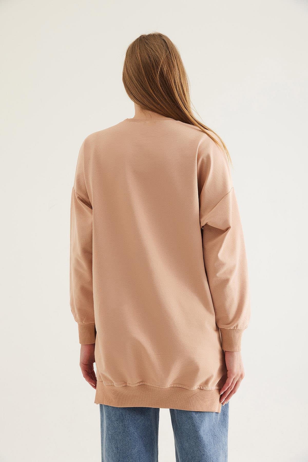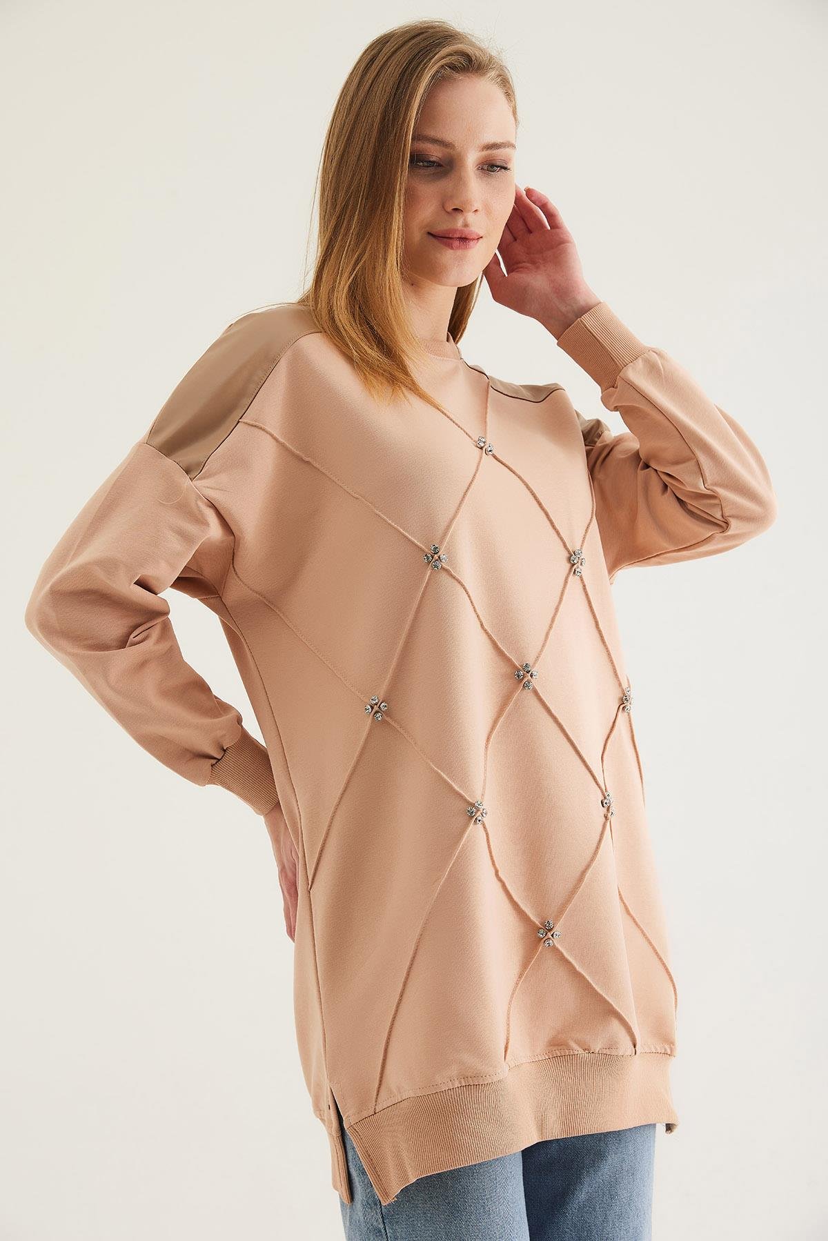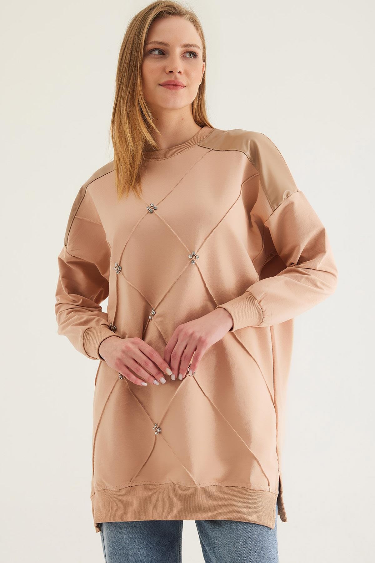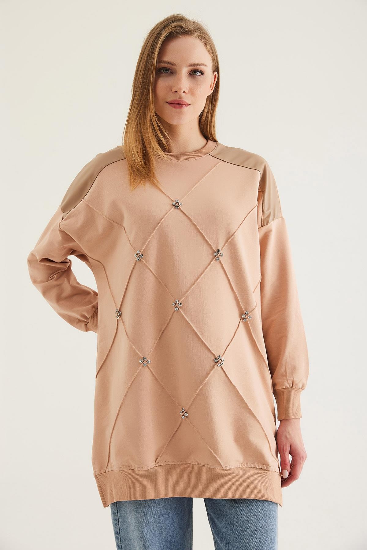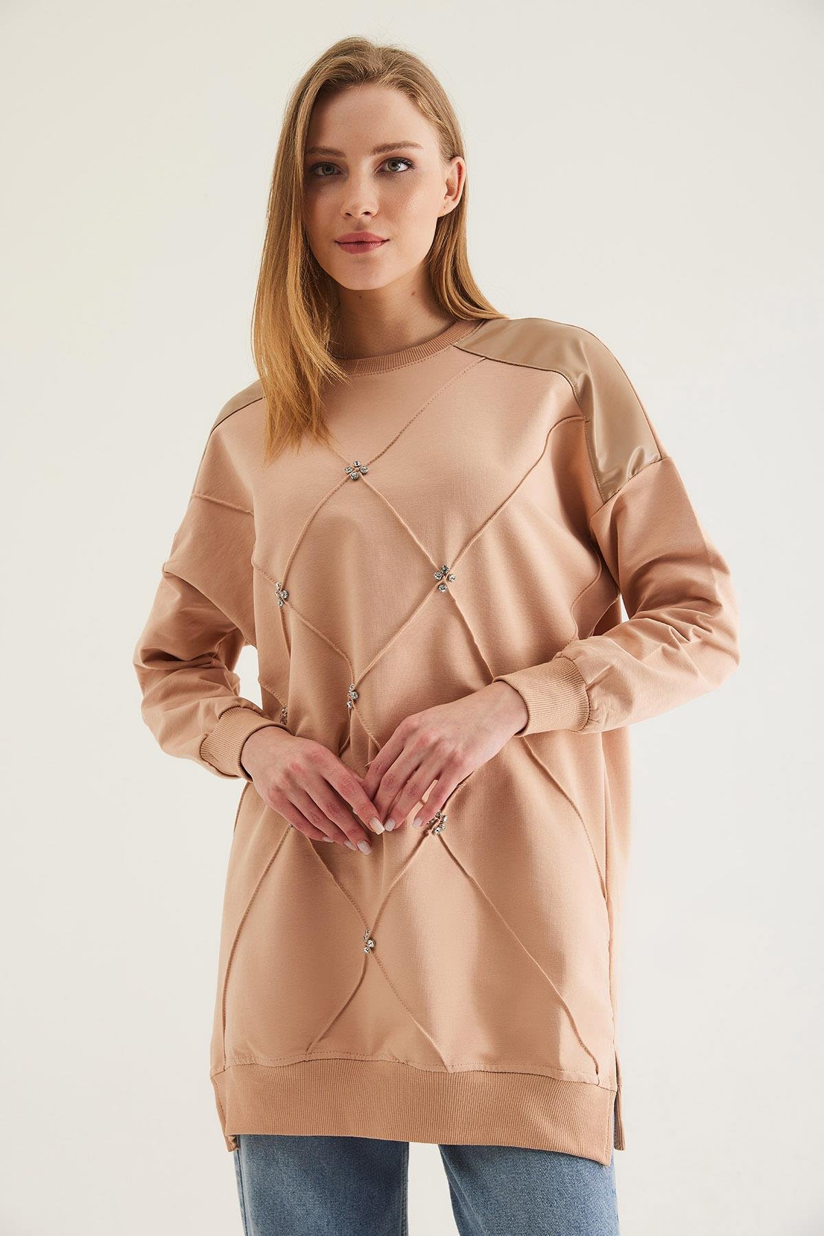 Deri Garnilli Taşlı İki İp Tunik Vizon (250474TNKXVZN)
