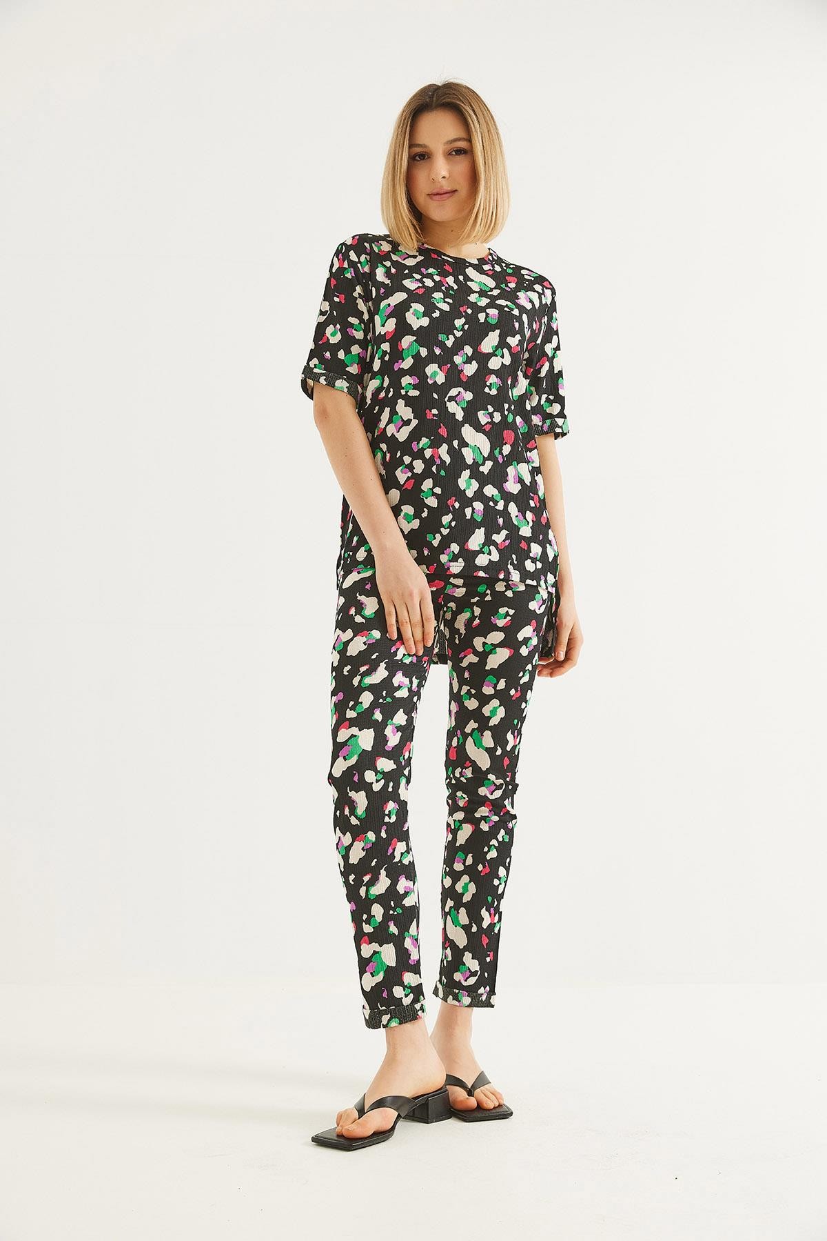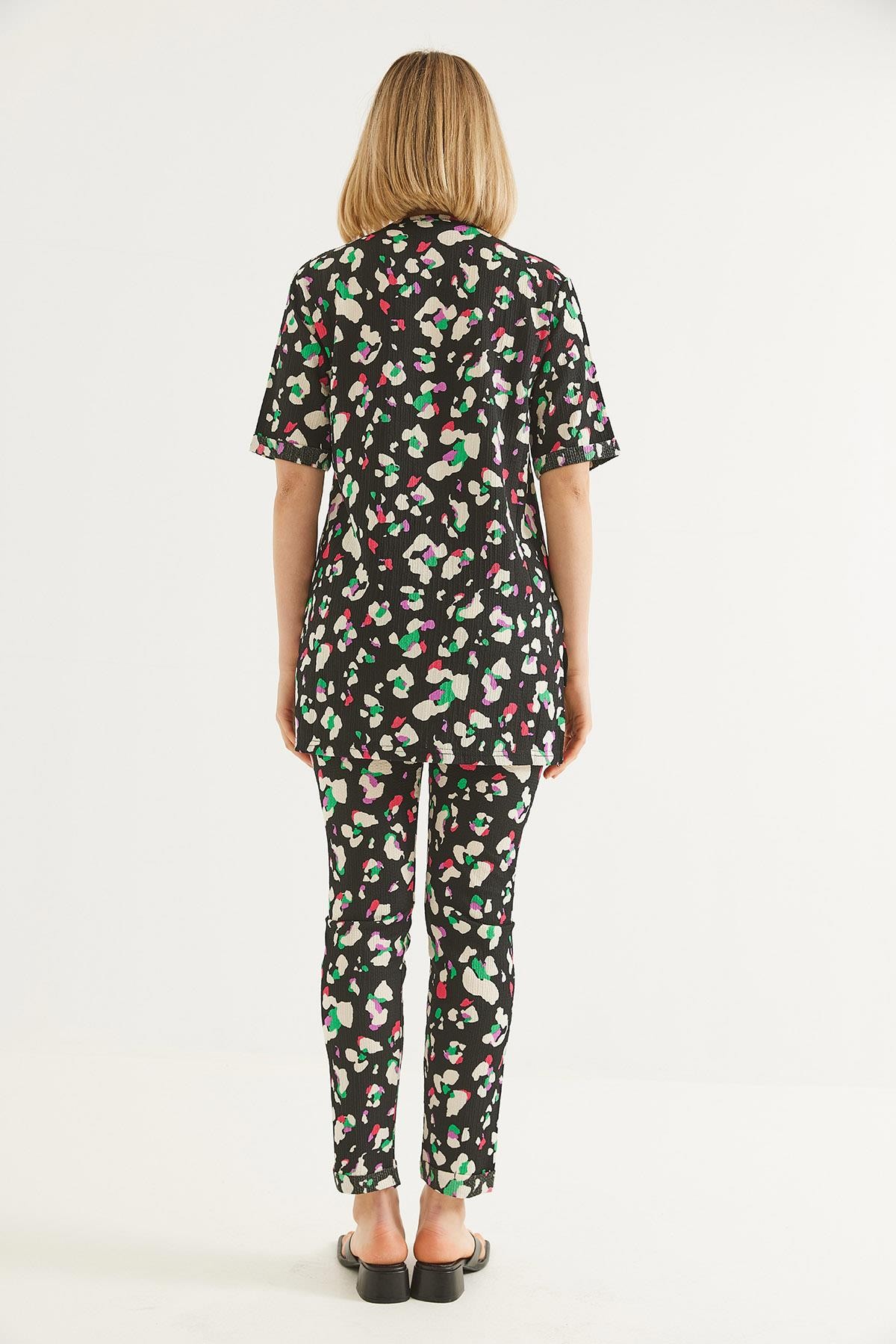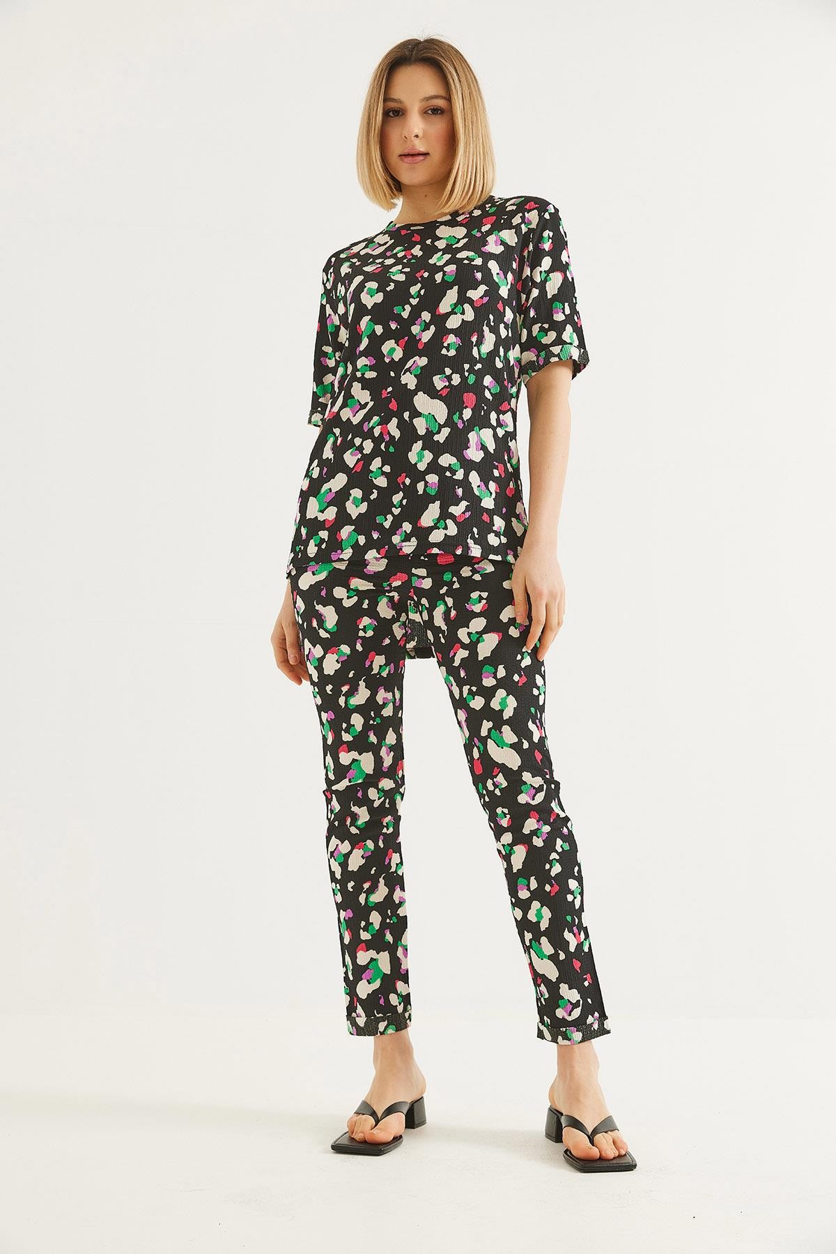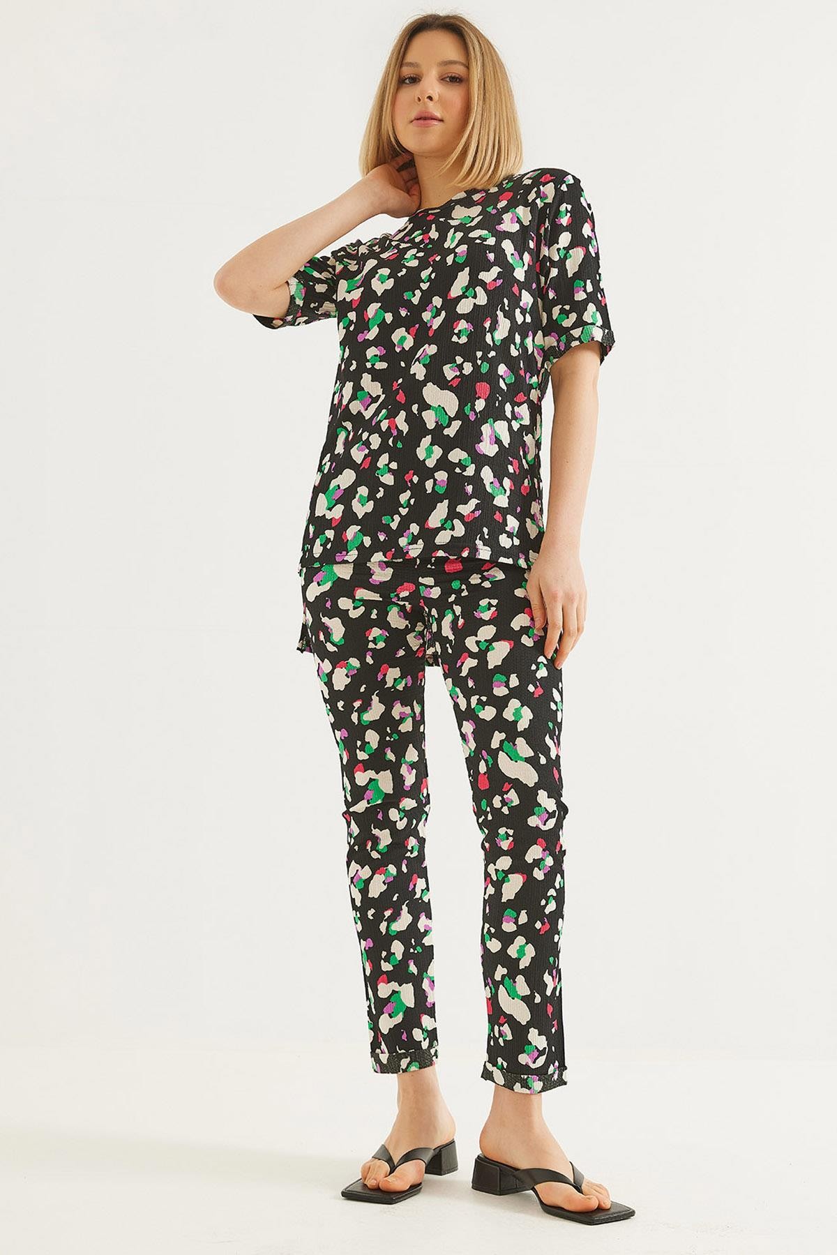 Desenli Kısa Kol İkili Takım Siyah (250511TKMXSYH)