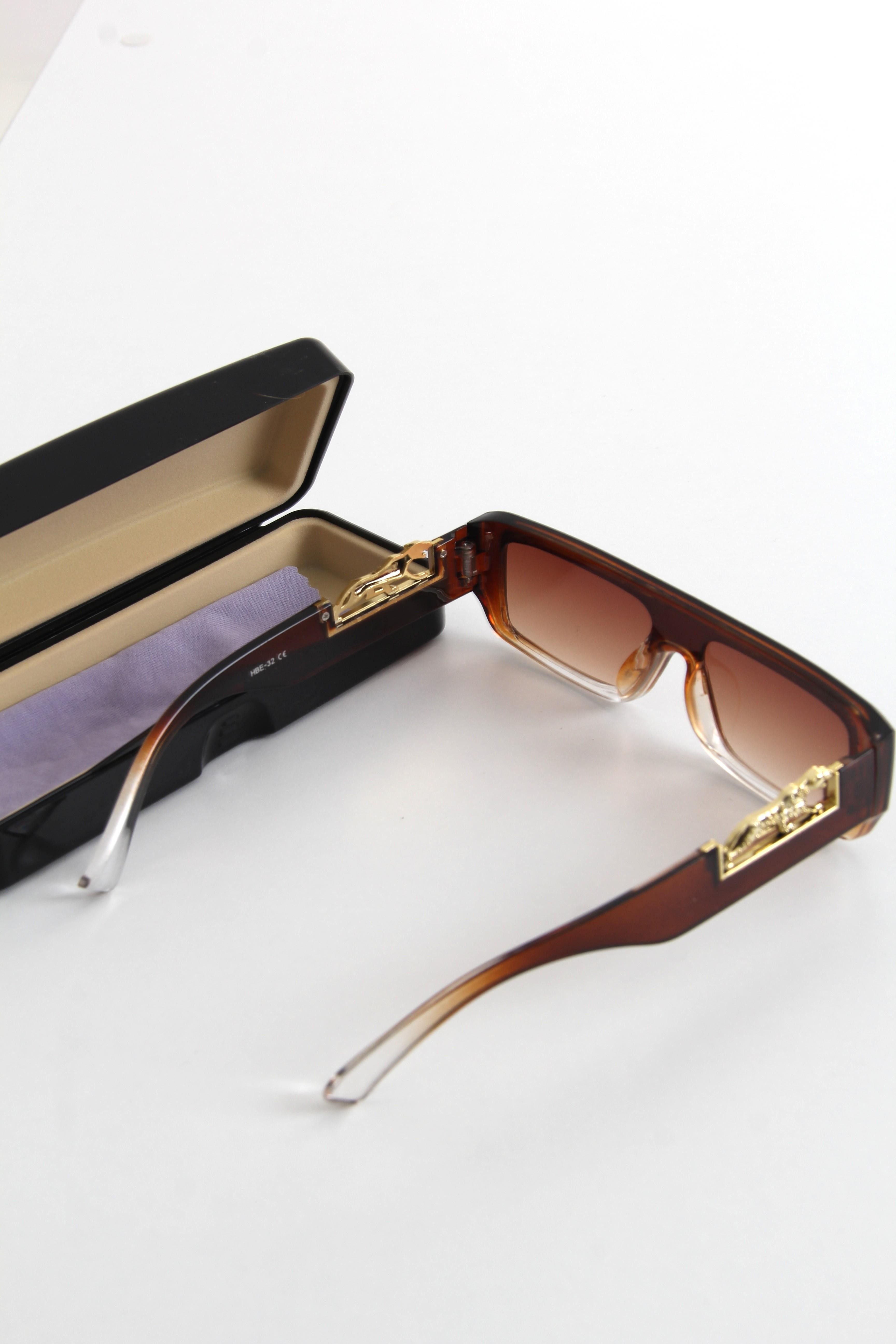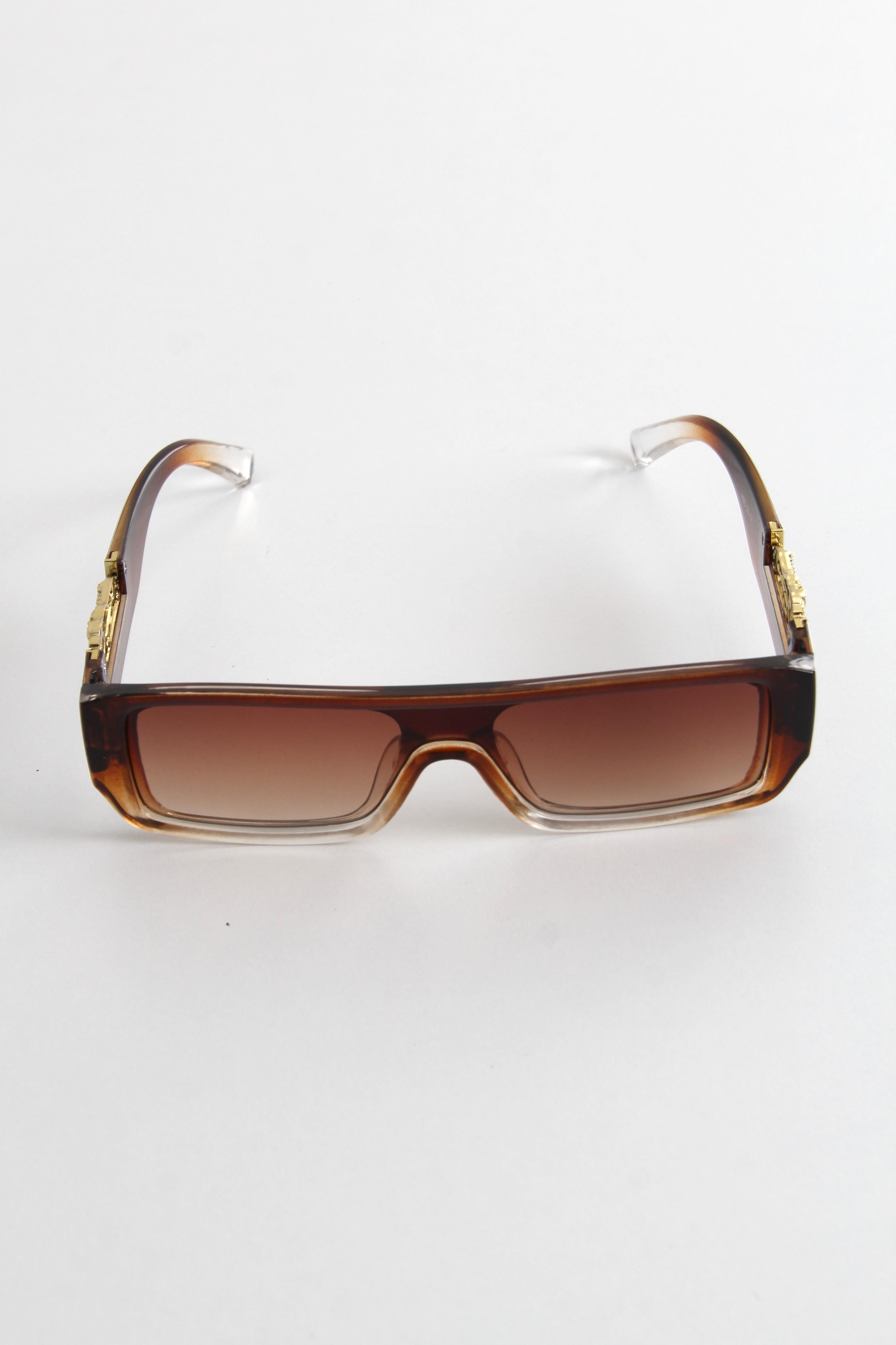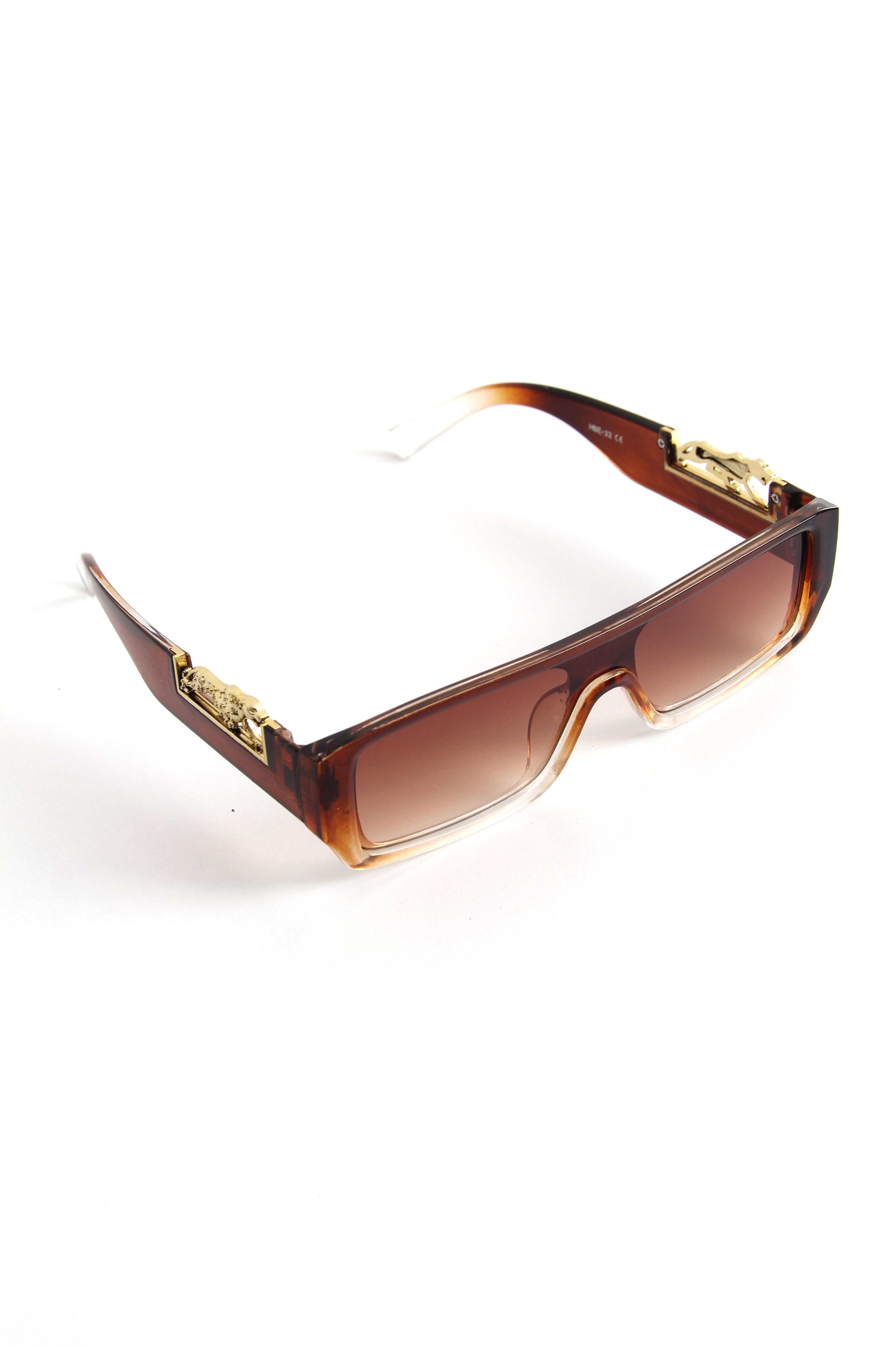 Dikdörtgen Model Çerçevesi Aksesuarlı Güneş Gözlüğü Kahverengi