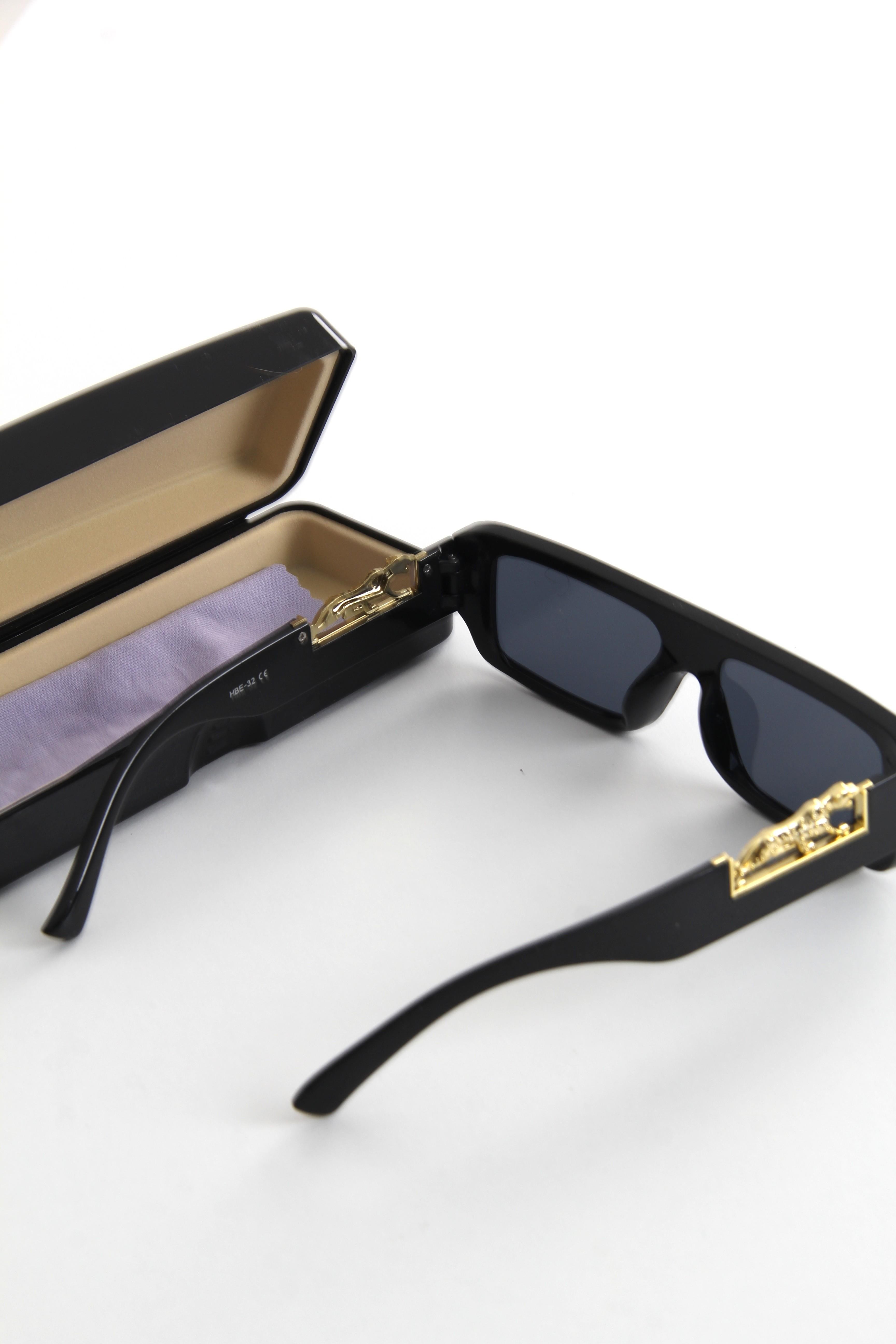Dikdörtgen Model Çerçevesi Aksesuarlı Güneş Gözlüğü Siyah (400129GZLXSYH)