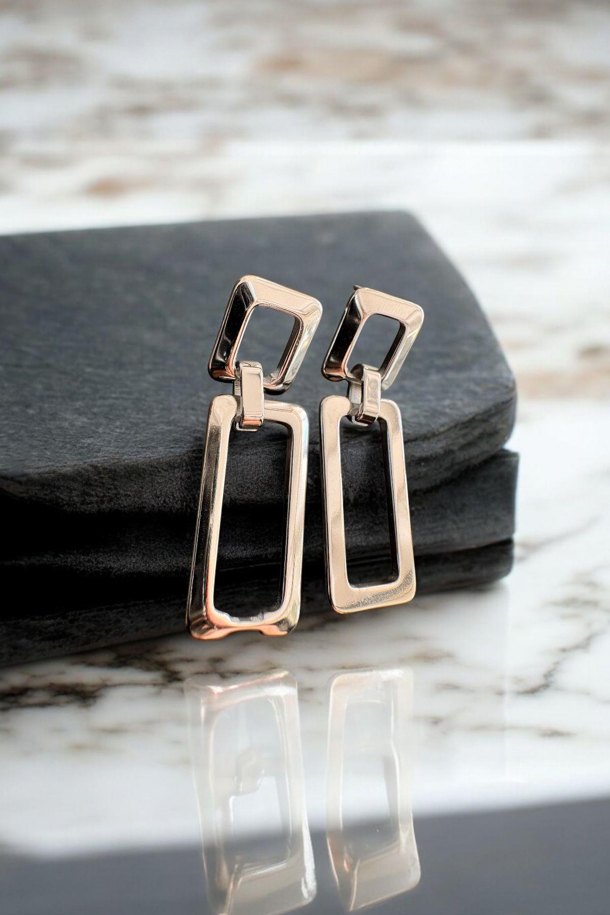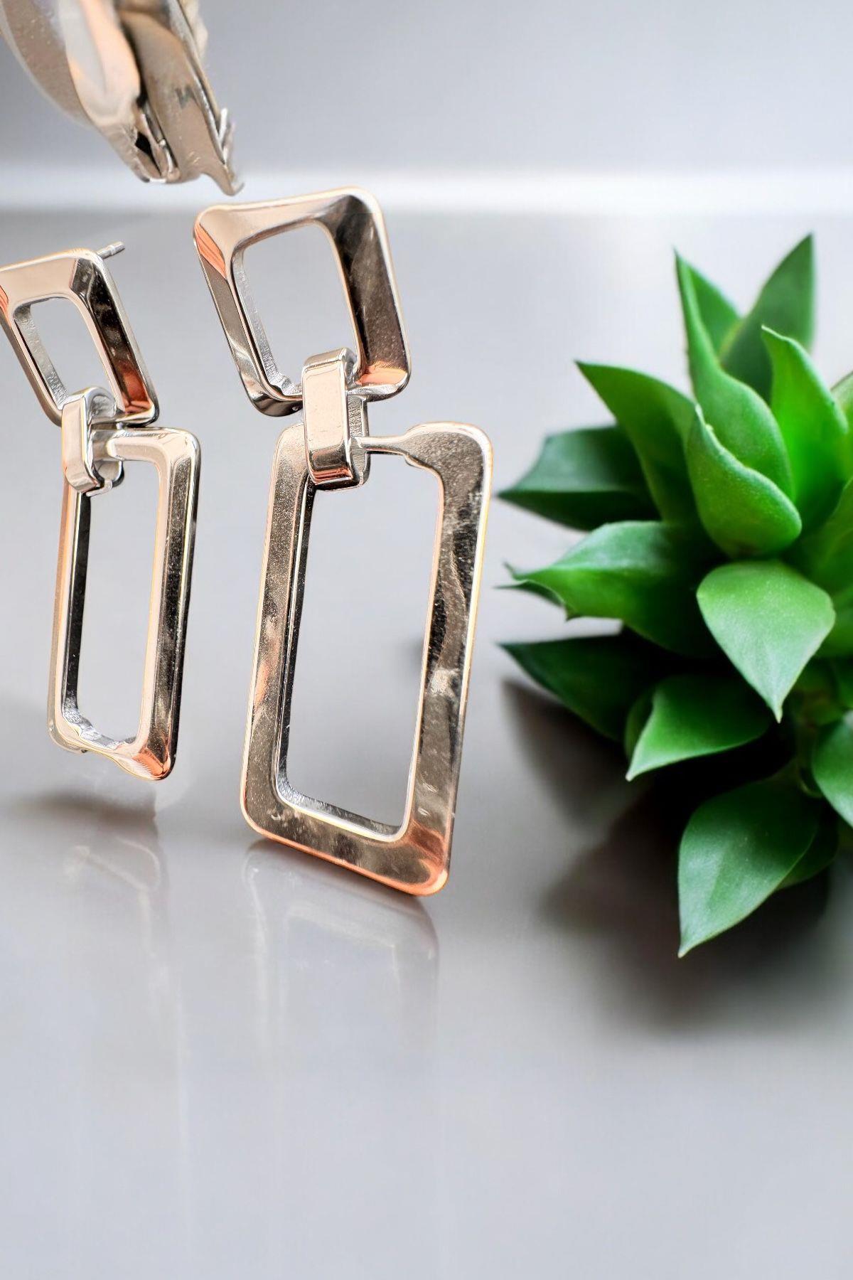Dikdörtgen Model Sarkıt Küpe Gümüş