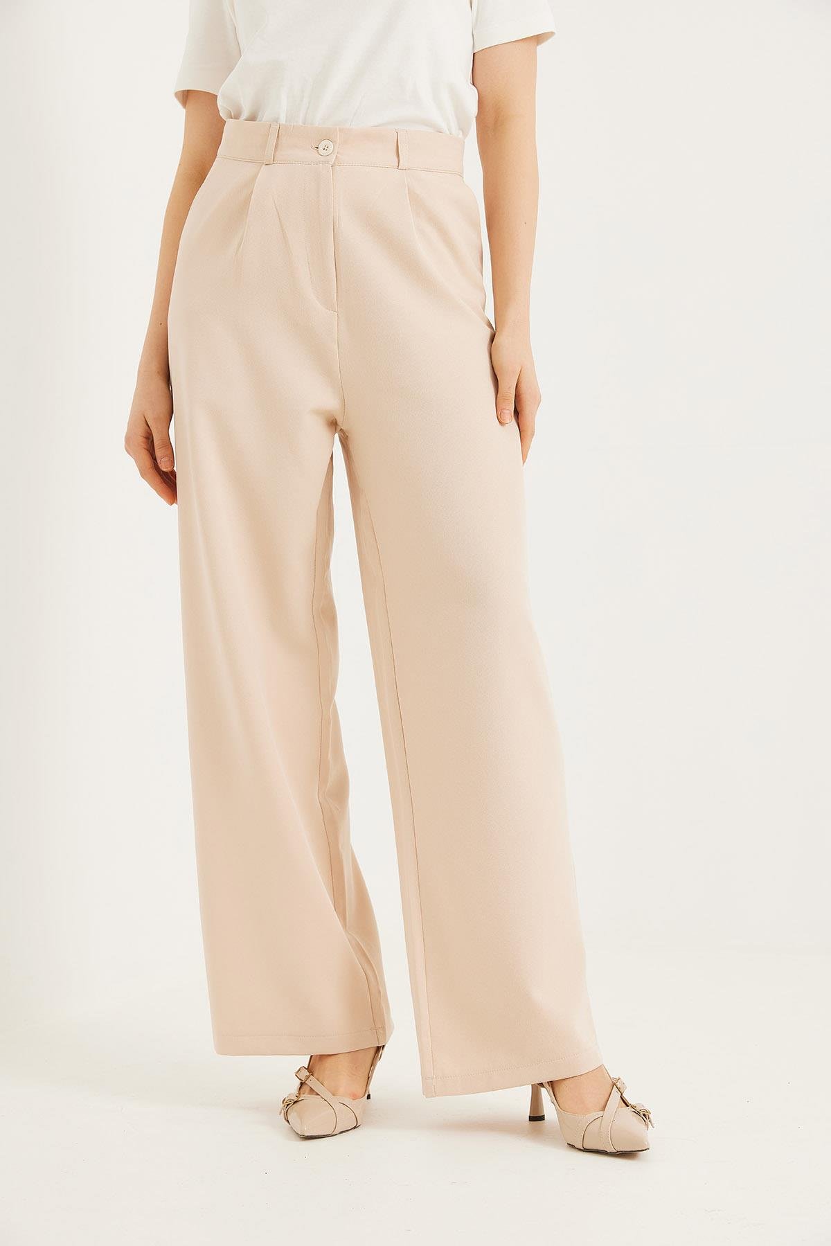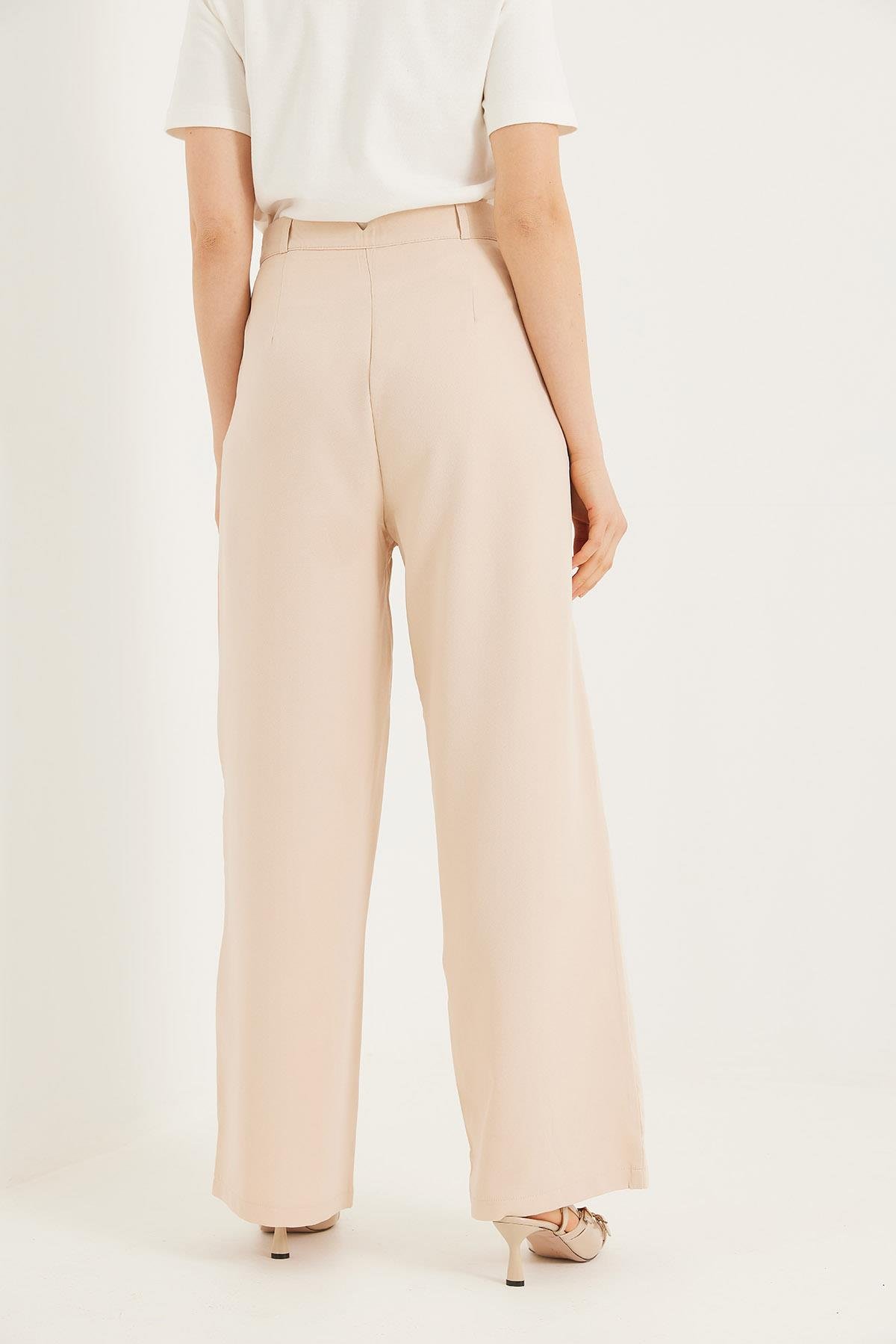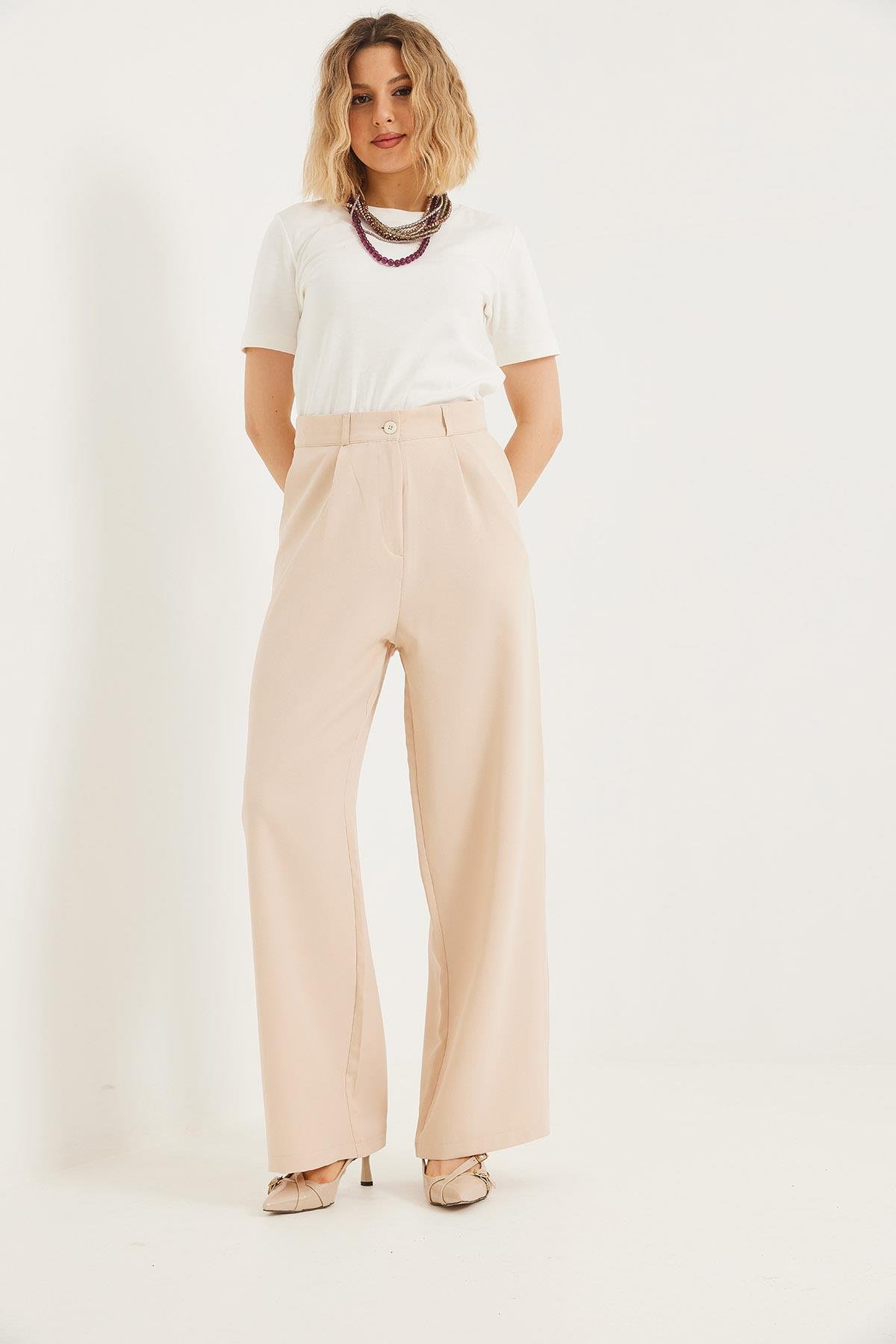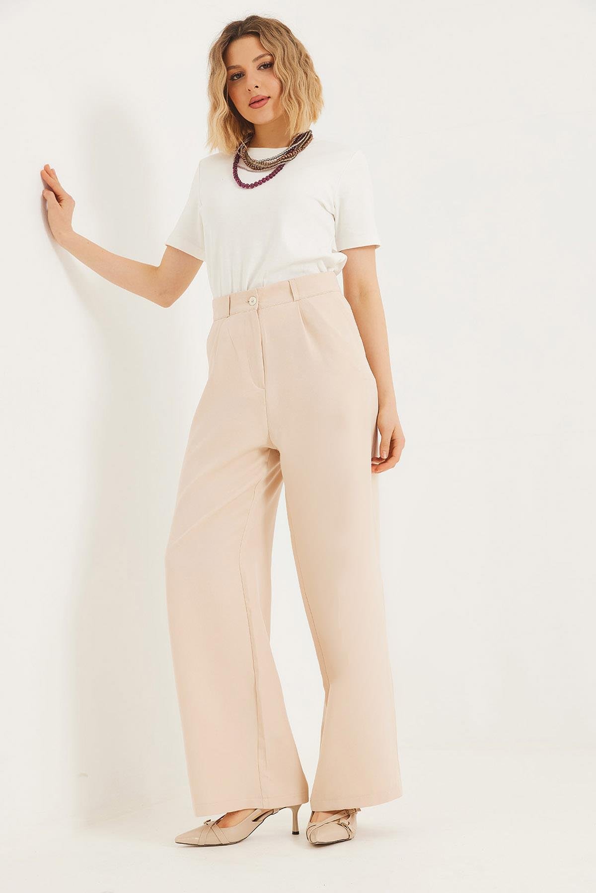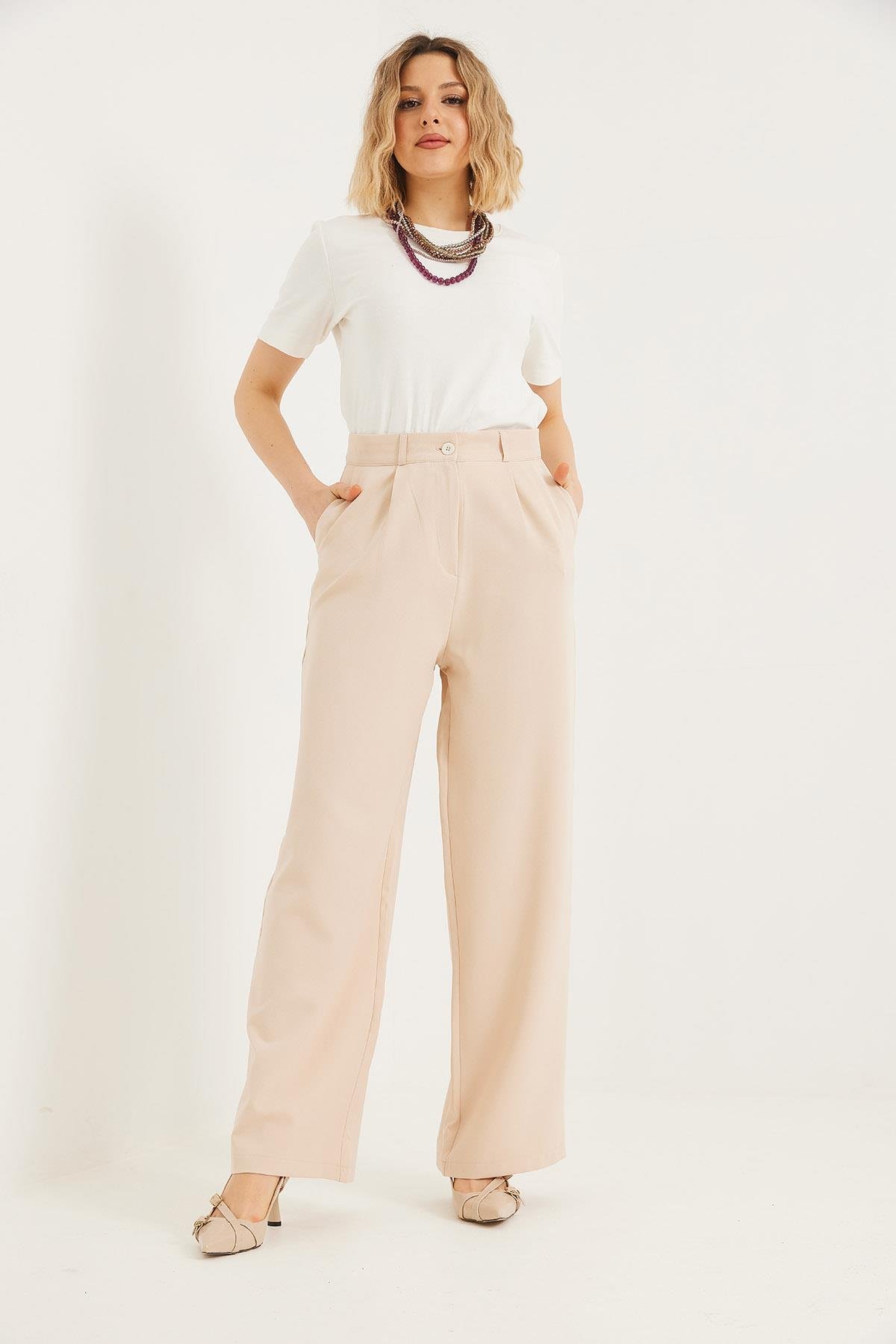 Dökümlü Bol Paça Pantolon Krem (250572PNTXKRM)