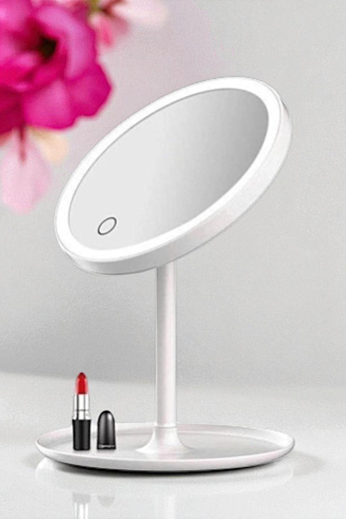 Dokunmatik Led Işıklı Yuvarlak Masa Üstü Makyaj Aynası Beyaz