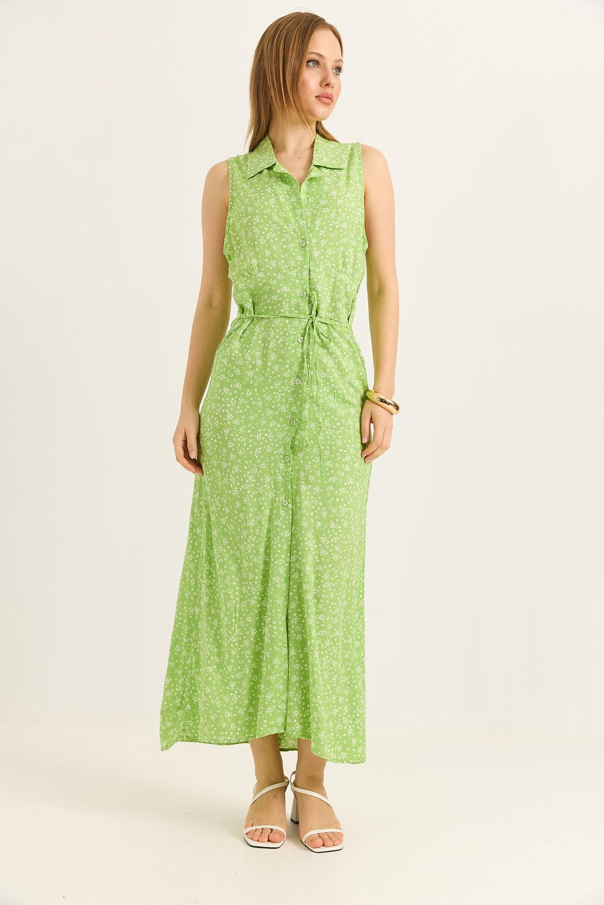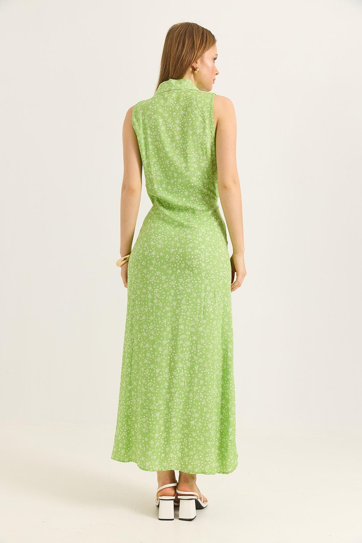 Düğmeli Kalın Askılı Yırtmaçlı Uzun Gömlek Elbise Yeşil (500127ELBXYŞL)