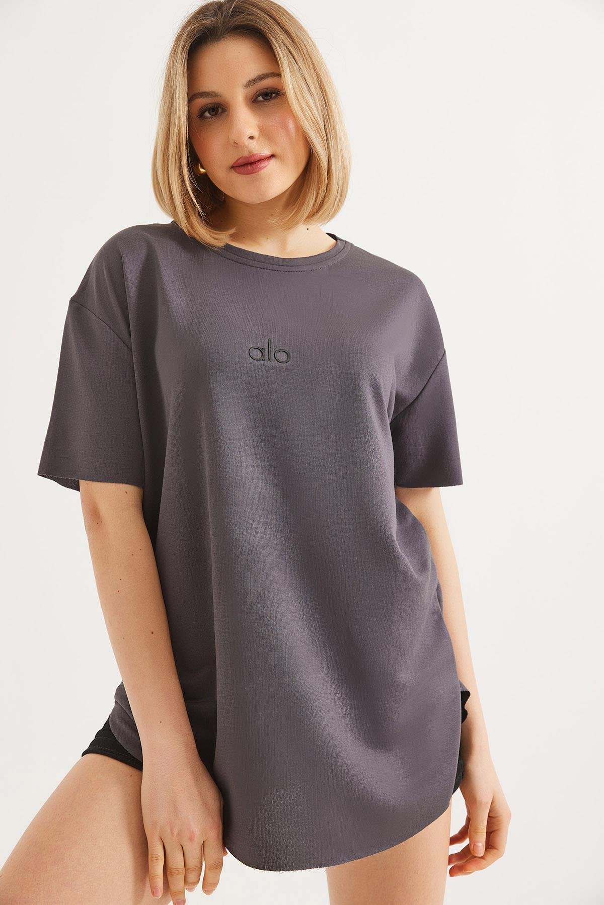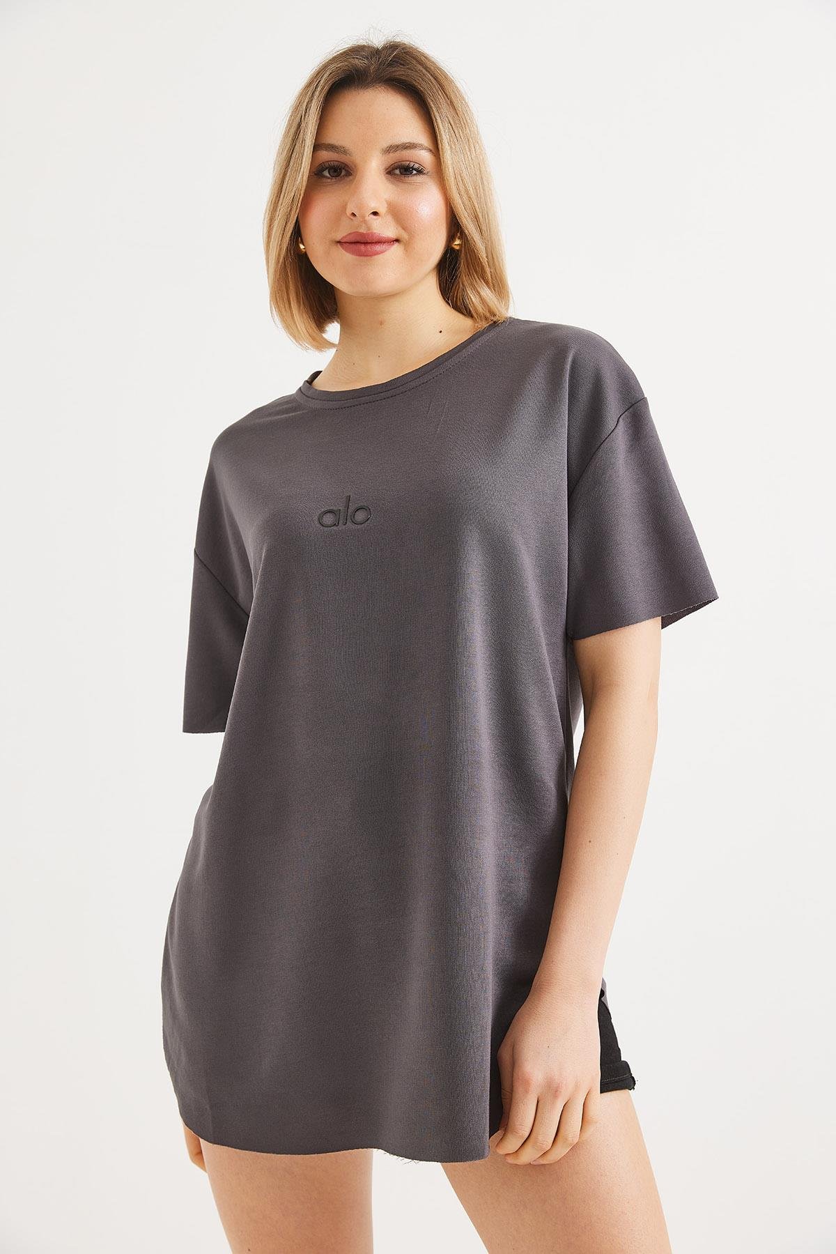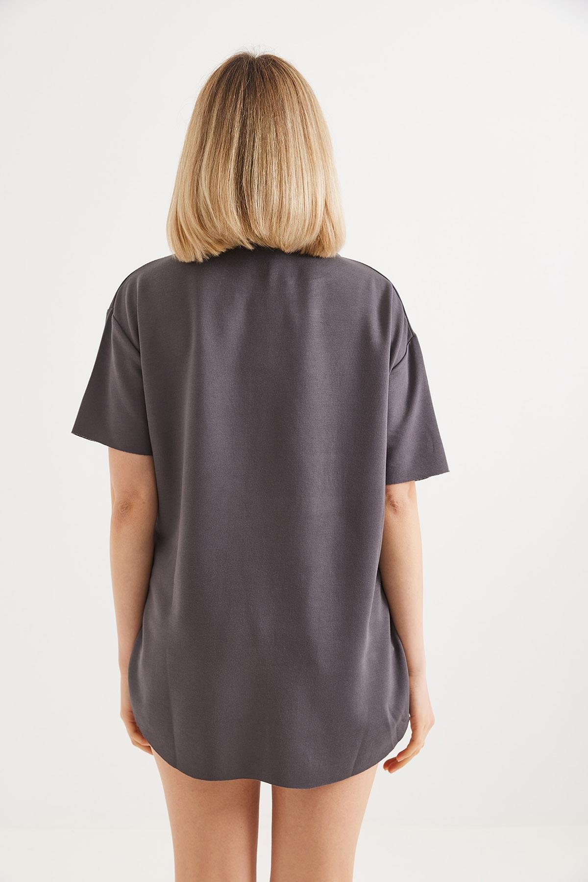 Eteği Oval Kesim Bisiklet Yaka Tshirt Füme