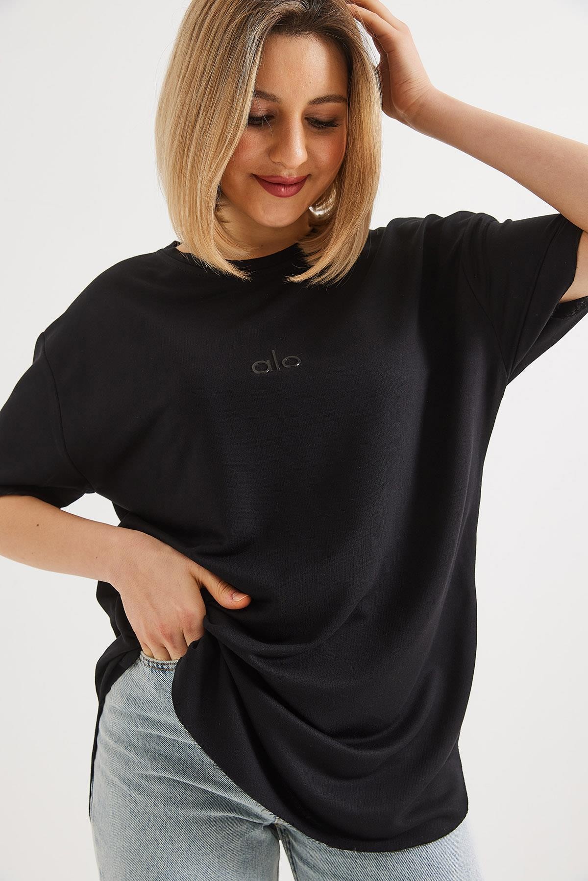 Eteği Oval Kesim Bisiklet Yaka Tshirt Siyah (250553TSHXSYH)