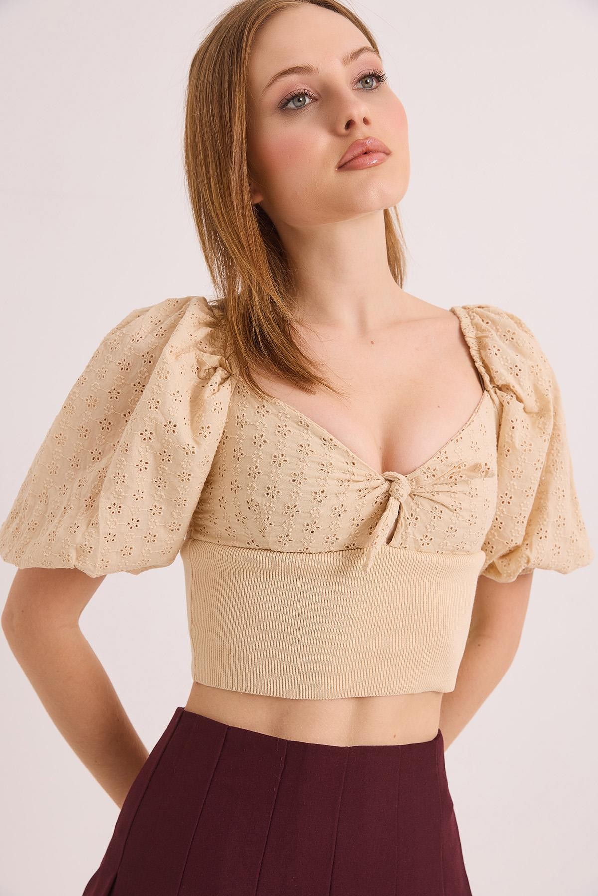 Fisto Detaylı Özel Tasarım Bluz Vizon (250865BLZXVZN)
