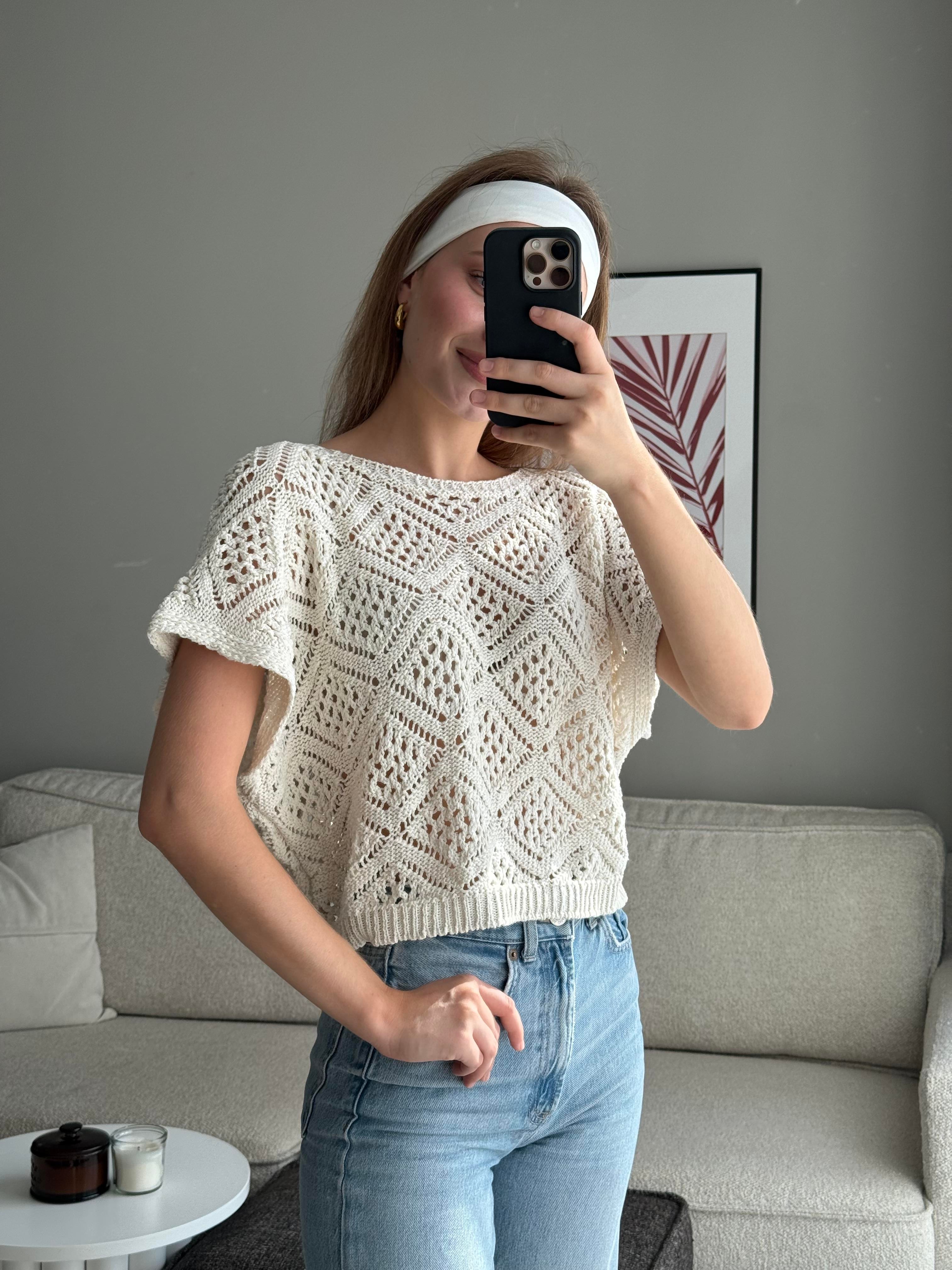 Geniş Yaka Yarasa Kol Triko Bluz (251203BLZXEKR)