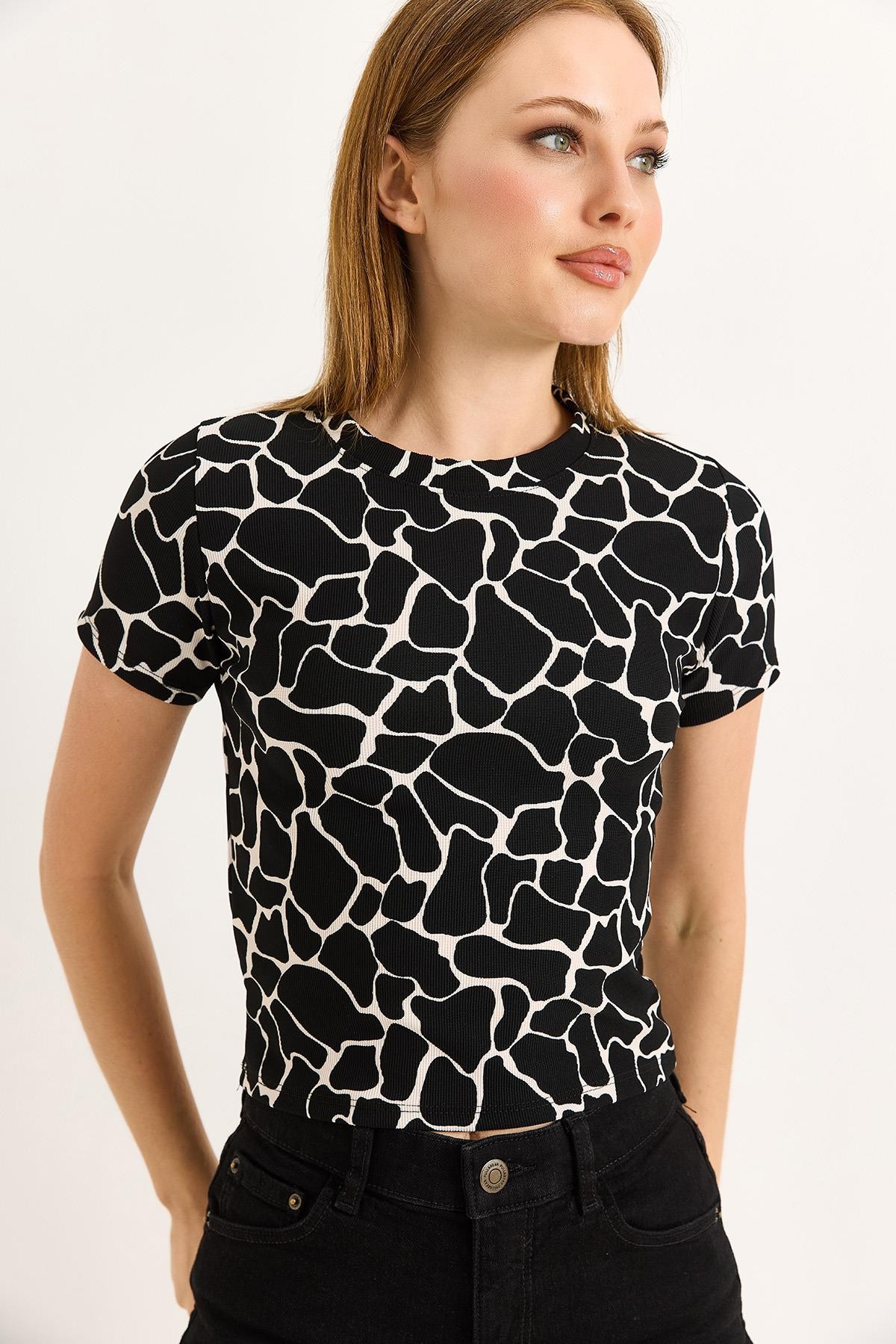 Geometrik Desen Kısa Kollu Bluz (500189BLZSGEO)