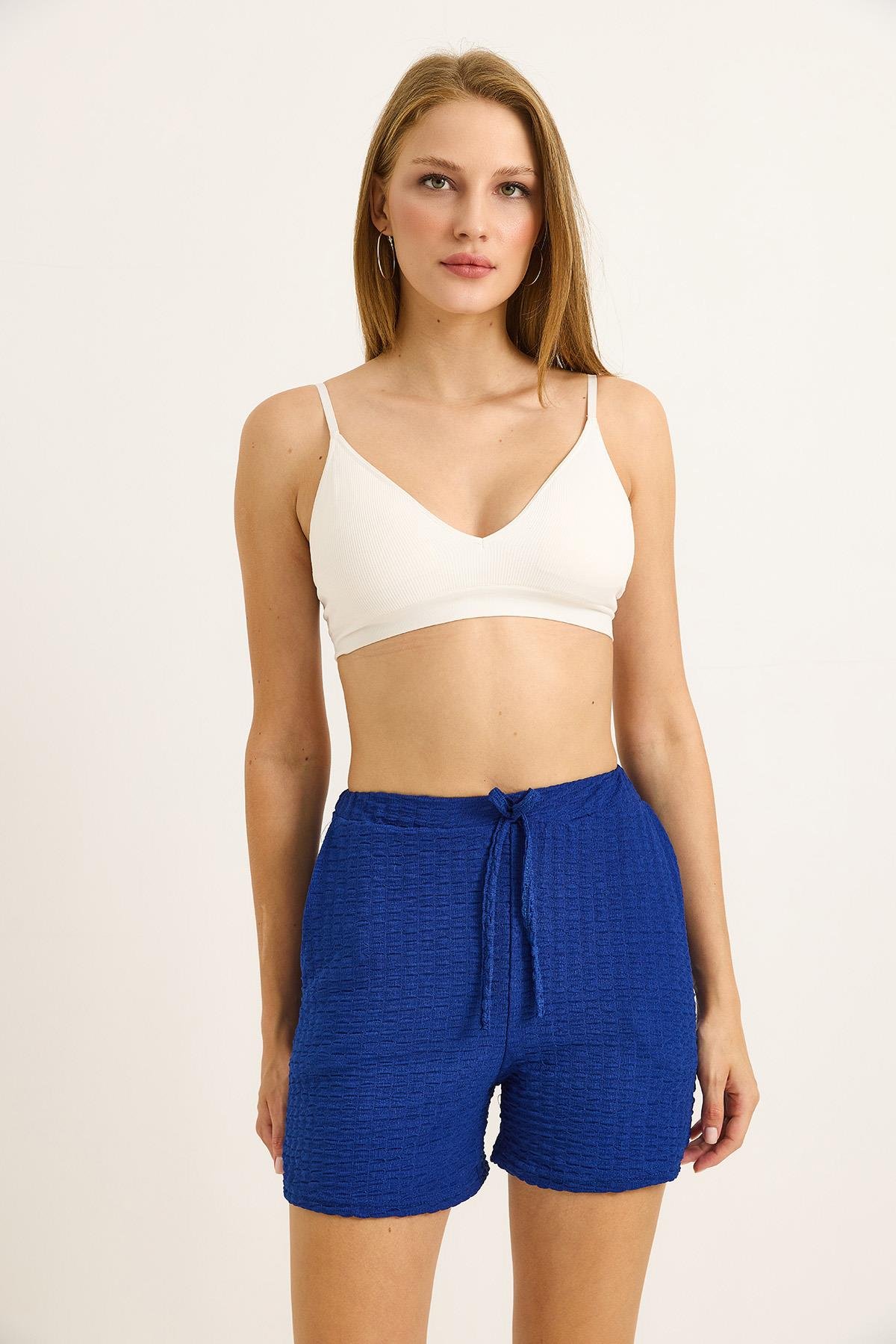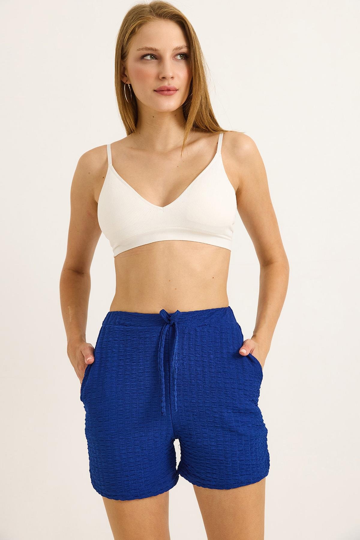 Gofre Kumaş Bel Lastikli Kadın Şort