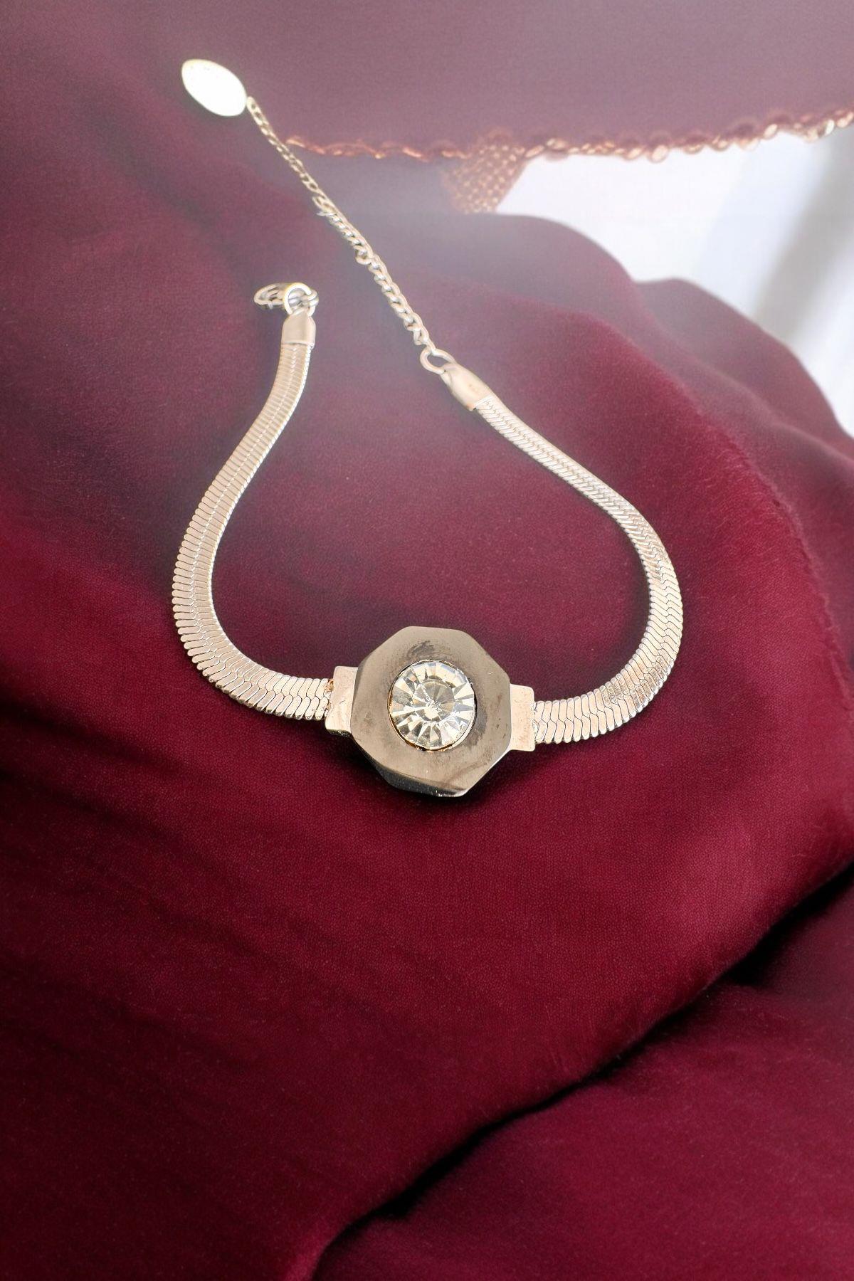 Gold Siyah Taşlı Çelik Bileklik Gümüş (250265AKSXGMS)