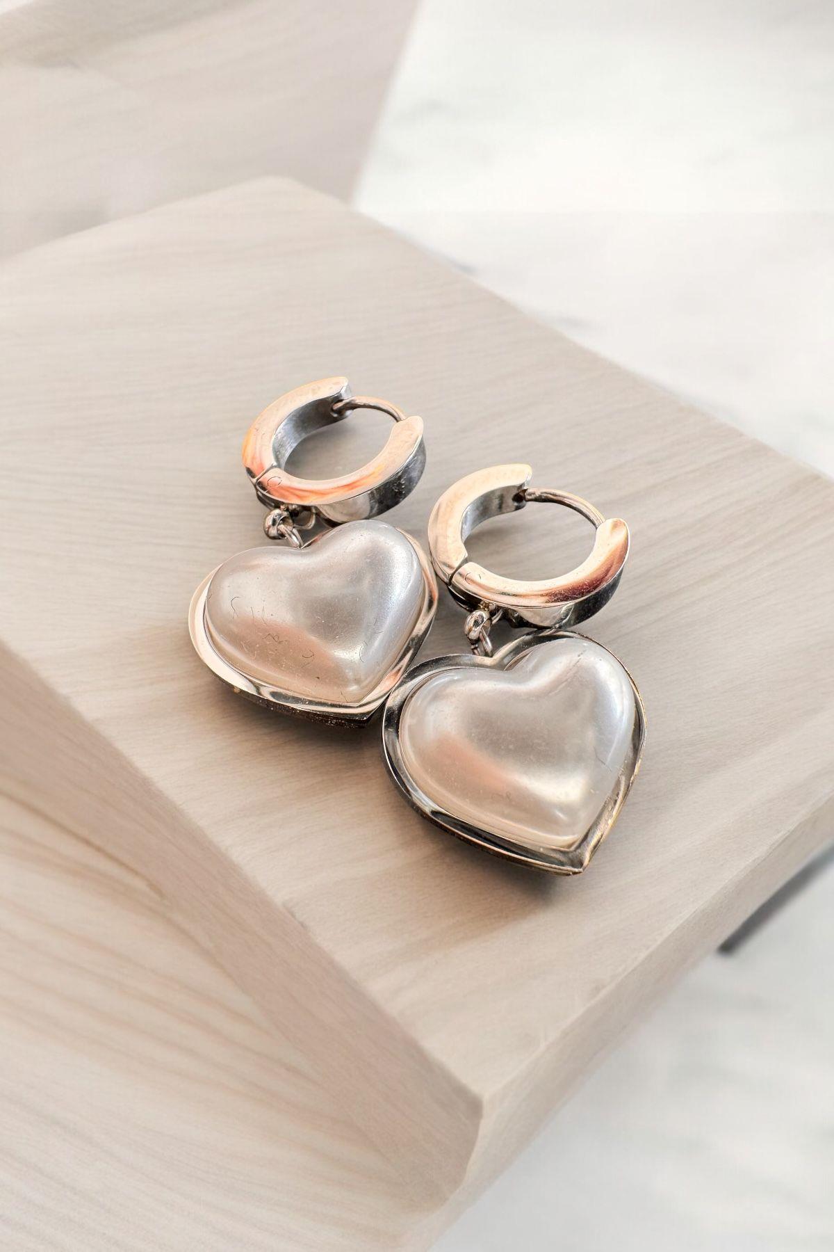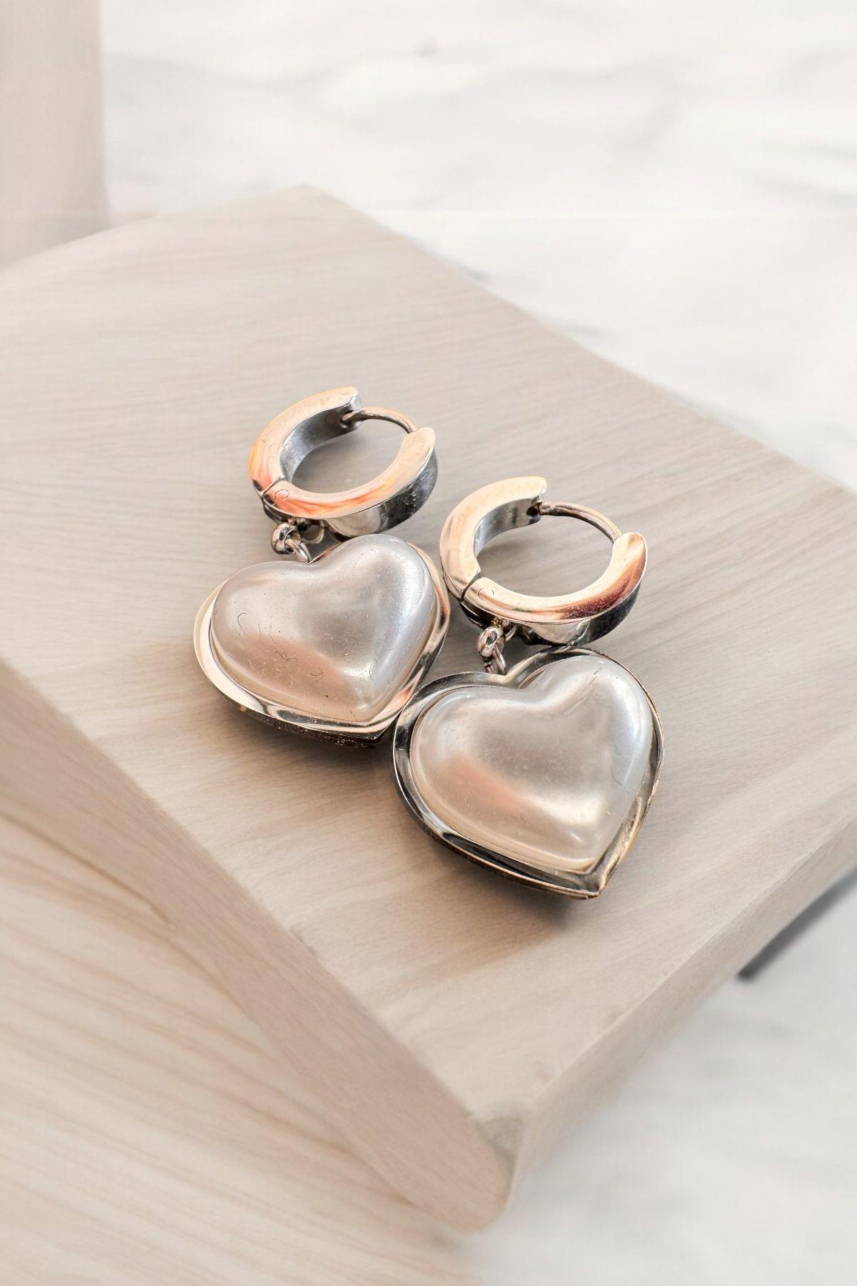 Gümüş Kalpli Sarkıt Sedef Küpe Gold