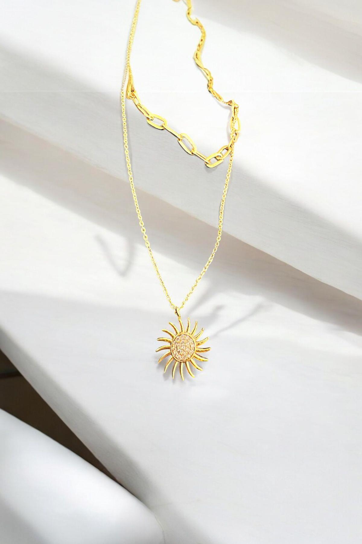 Güneş Altın Kaplama İki Zincirli Kolye Gold
