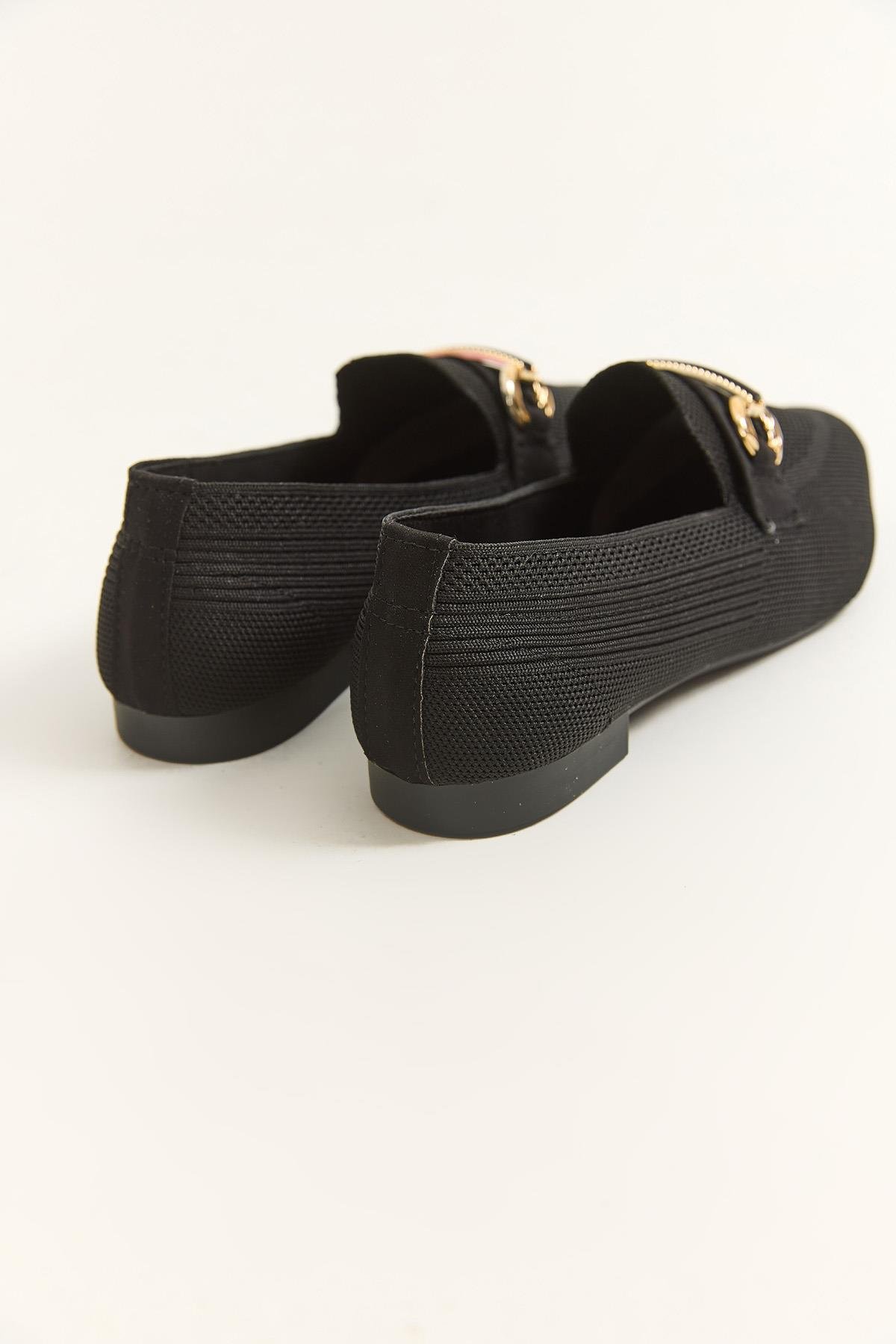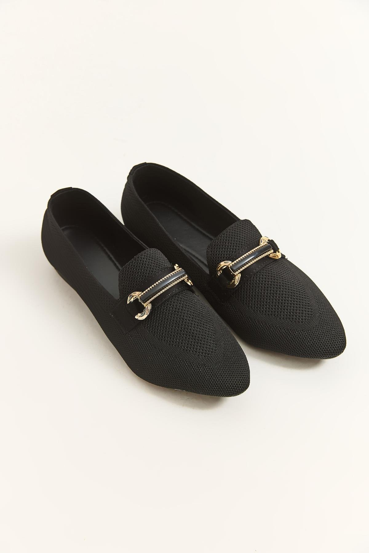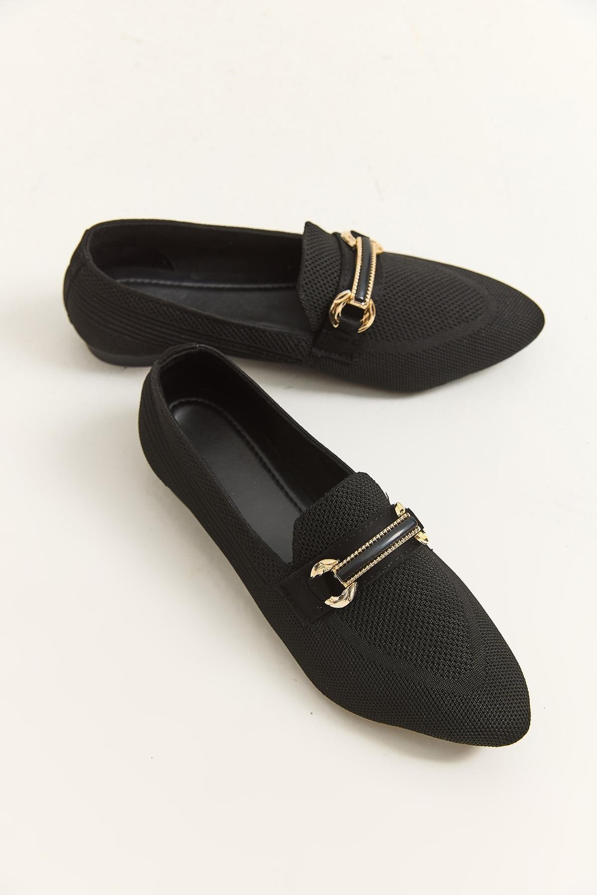 Hafif Topuk Aksesuarlı Kadın Babet Siyah (252074AYKXSYH)