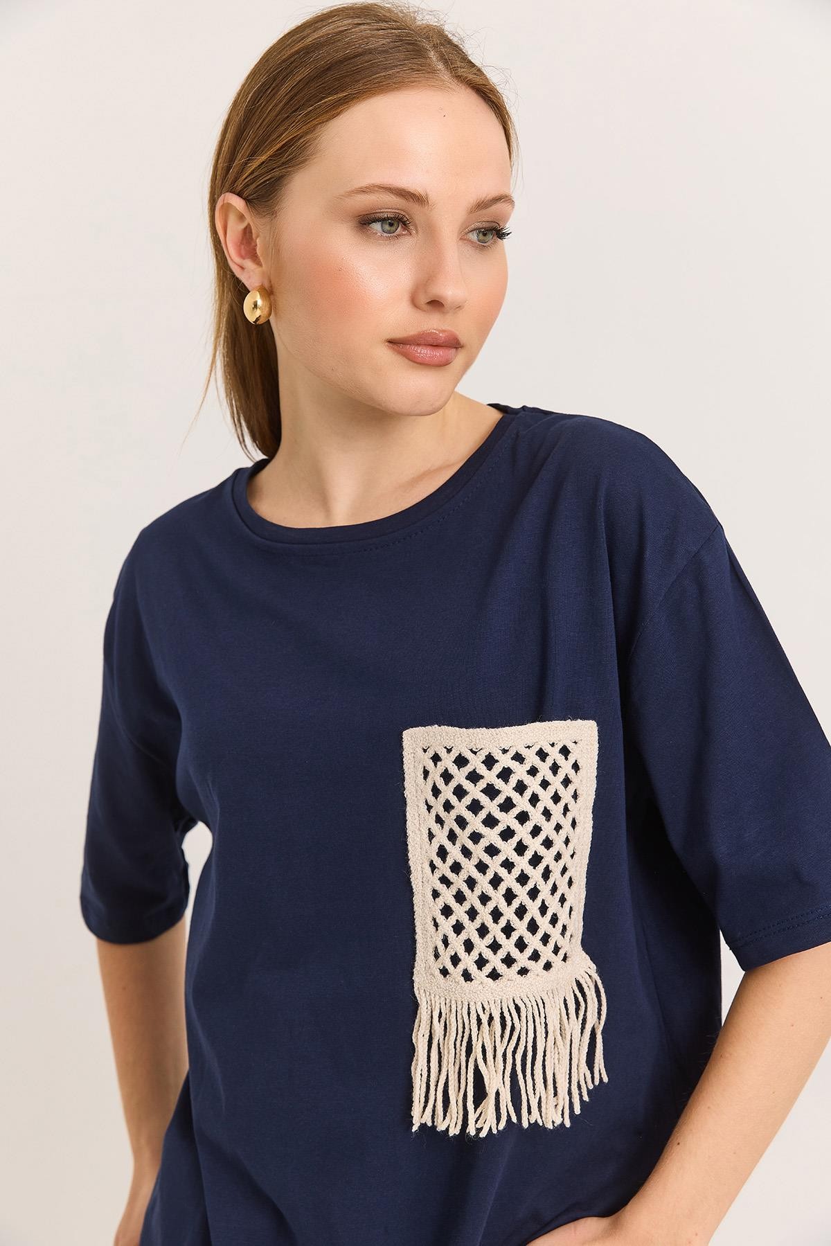 Hasır Cepli Yumuşak Dokulu Fit Tshirt Lacivert (250720TSHXLCV)