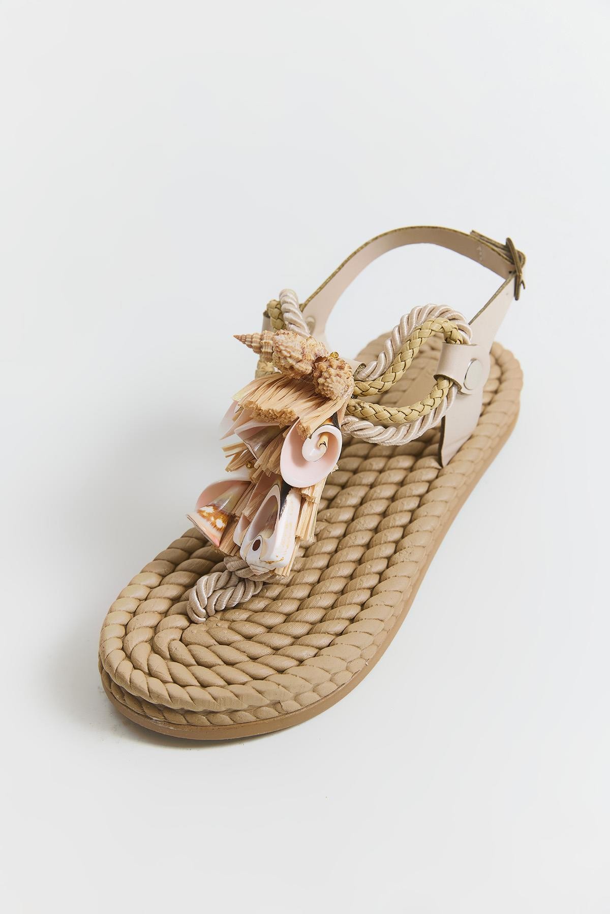 Hasır Taban Aksesuarlı Parmak Arası Terlik Bej