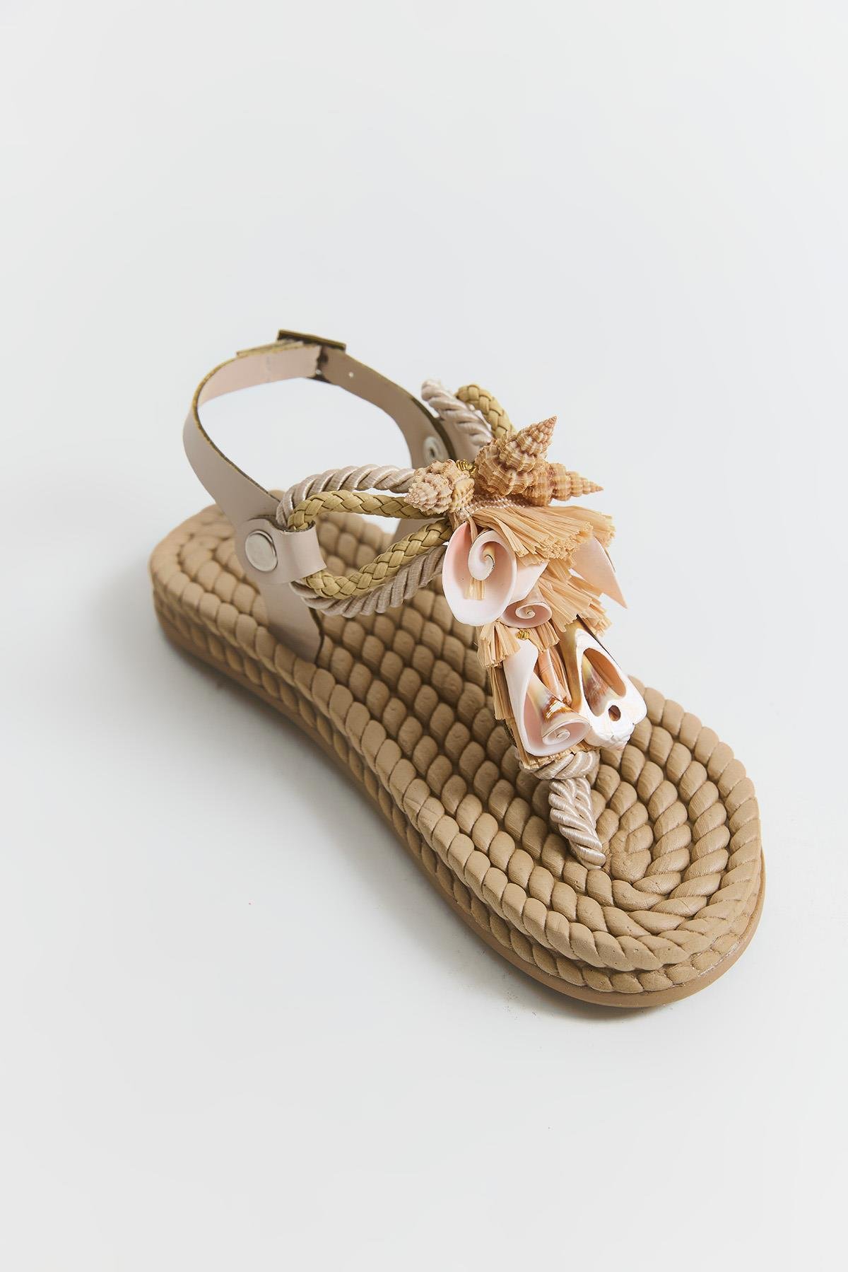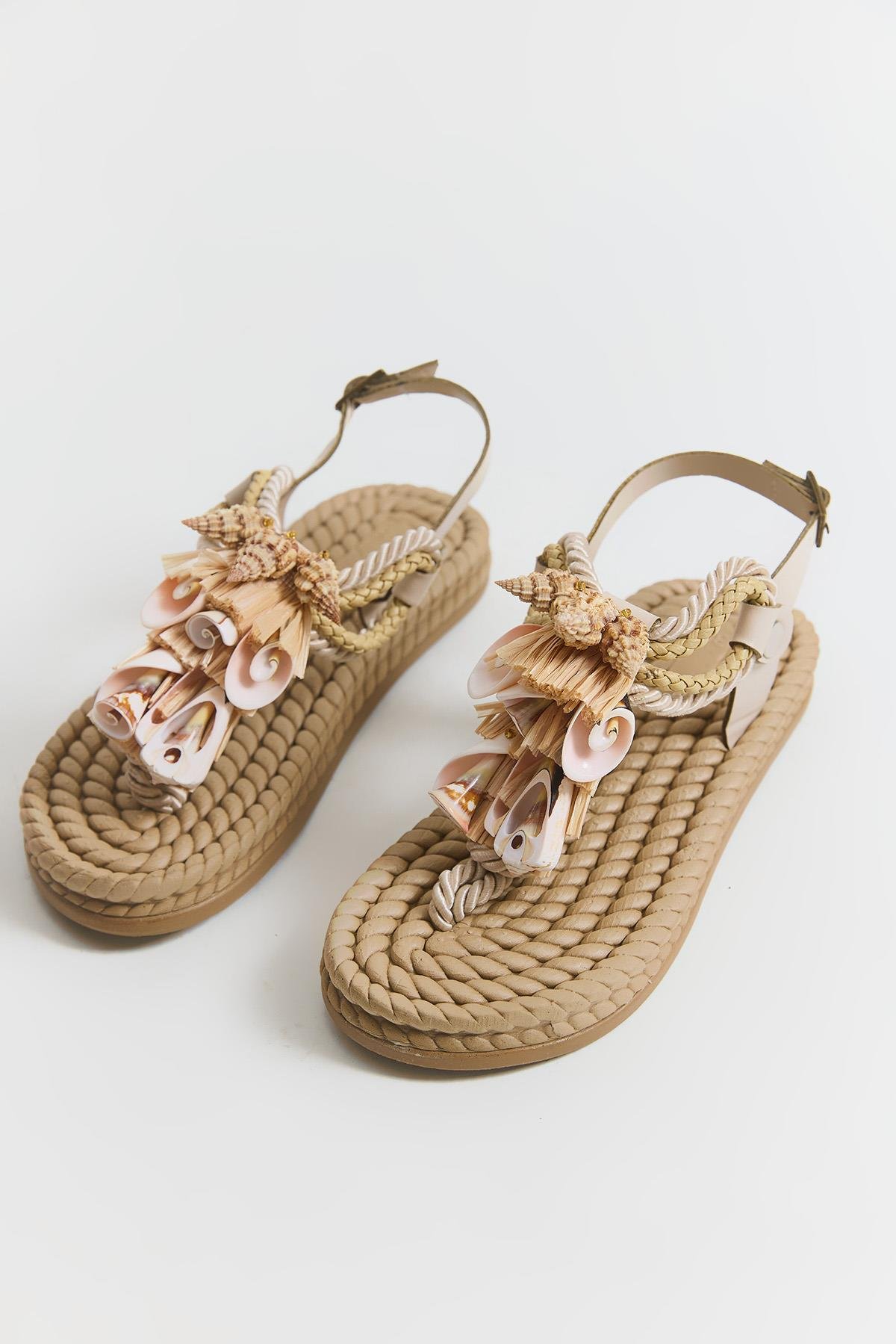 Hasır Taban Aksesuarlı Parmak Arası Terlik Bej (250892TRLXBEJ)