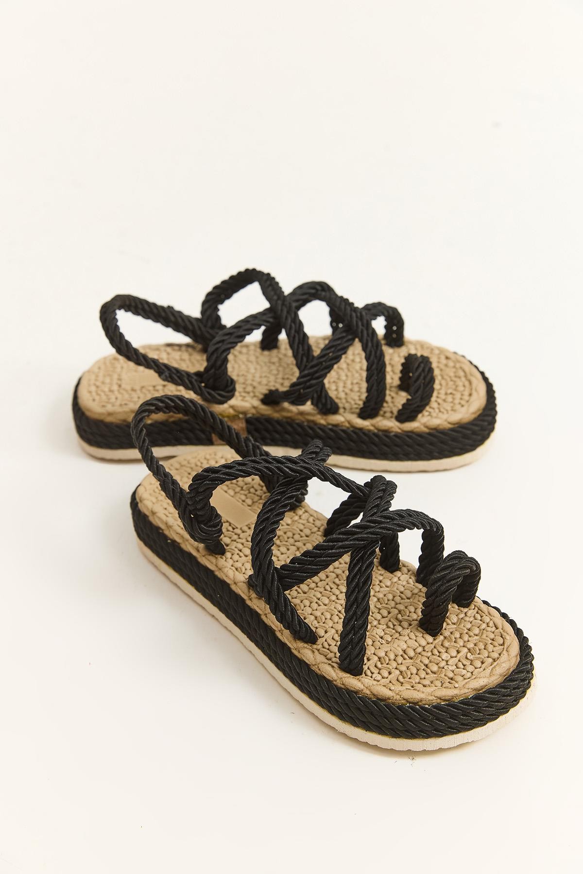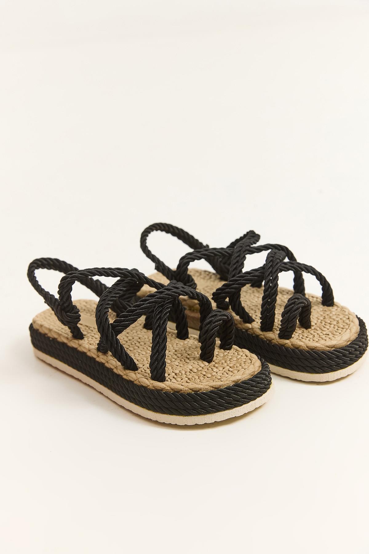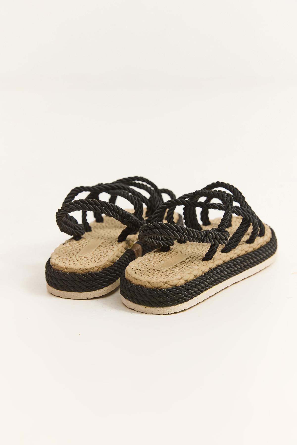 Hasır Tabanlı Halatlı Parmak Arası Terlik Siyah (252051TRLXSYH)