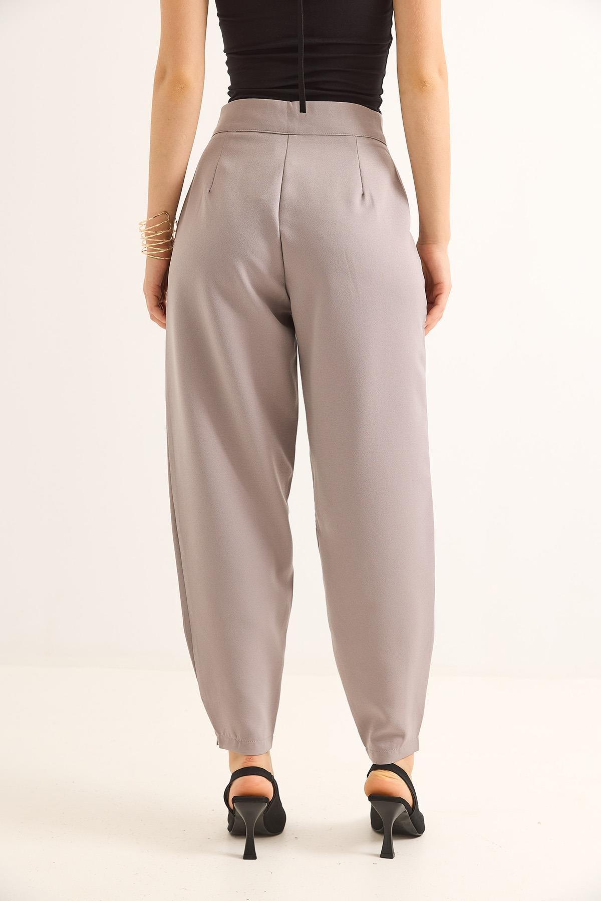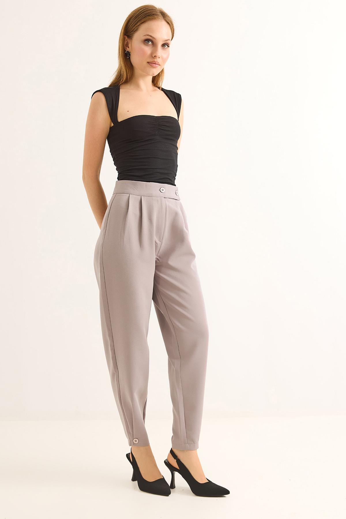 Havuç Model Çift Düğmeli Palazzo Pantolon Gri (251089PNTXGRİ)