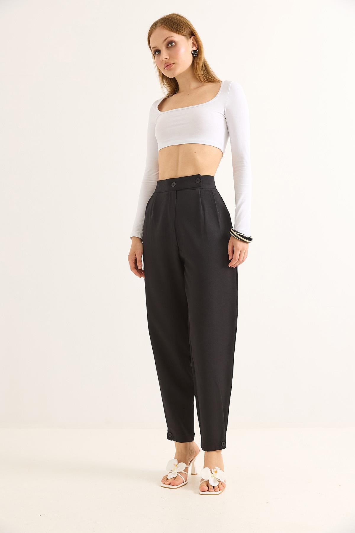 Havuç Model Çift Düğmeli Palazzo Pantolon Siyah (251089PNTXSYH)