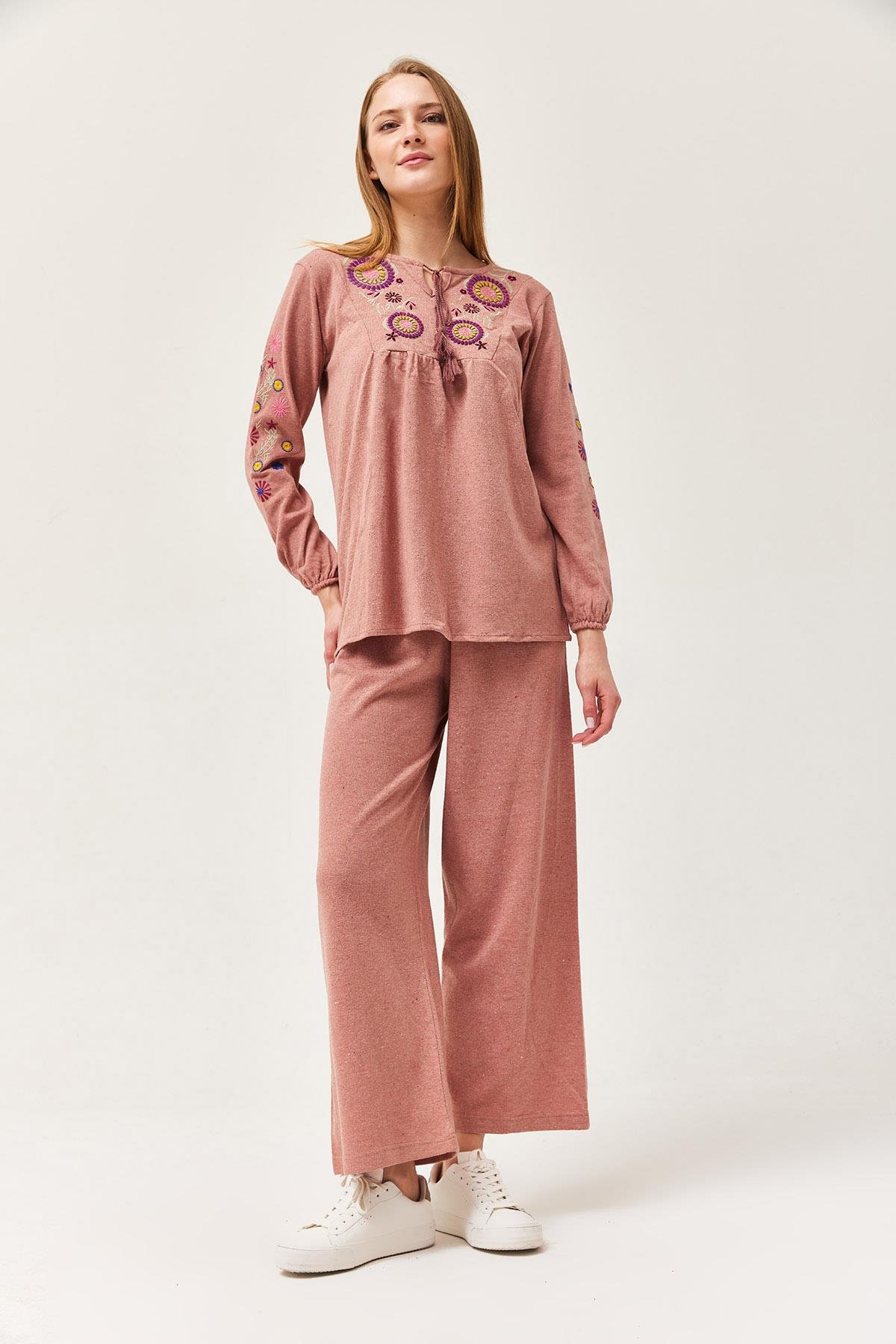 Hera Kumaş Önü ve Kolları İşlemeli İkili Takım Gül Kurusu (250398TKMXGÜL)
