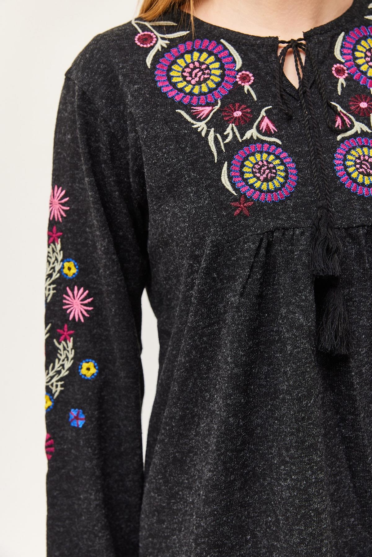 Hera Kumaş Önü ve Kolları İşlemeli İkili Takım Siyah (250398TKMXSYH)