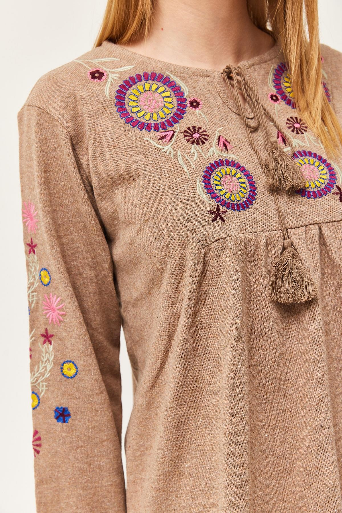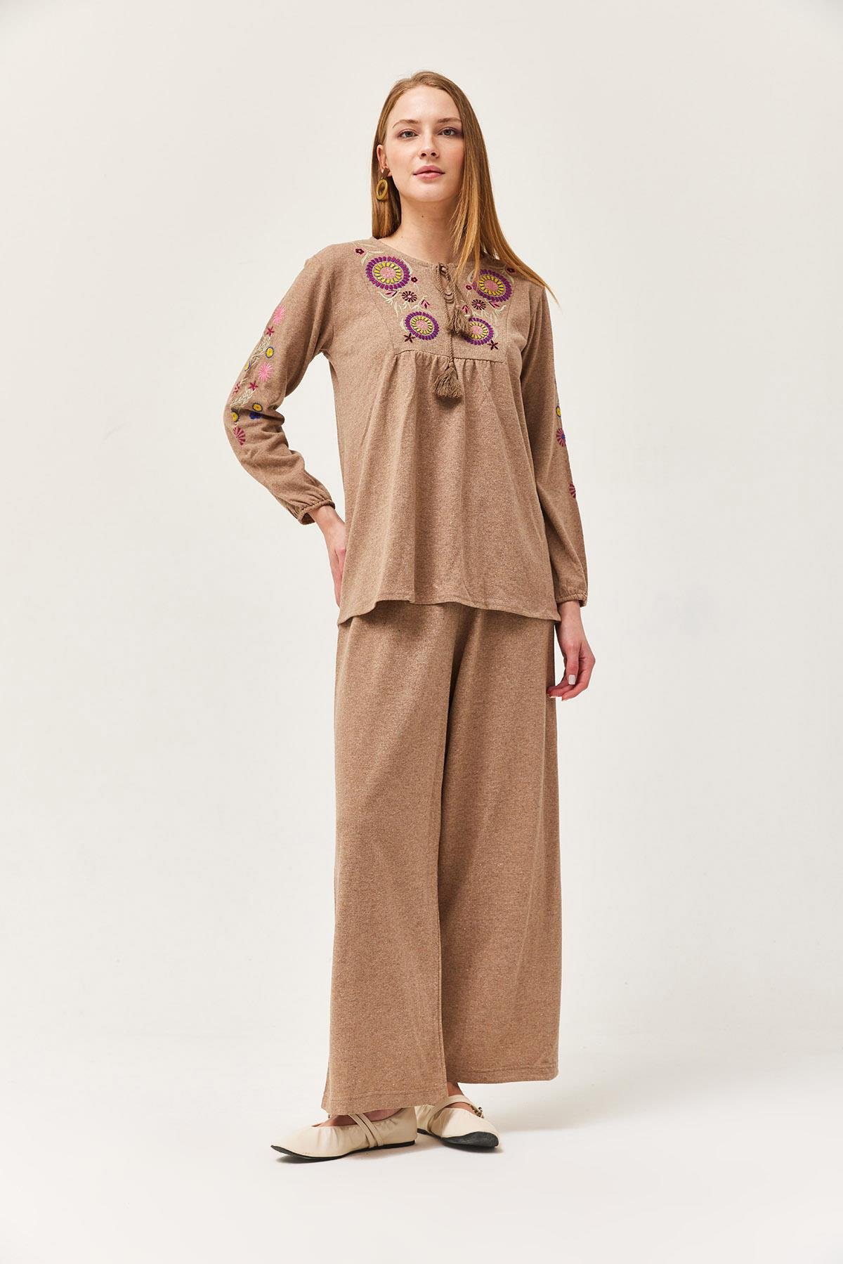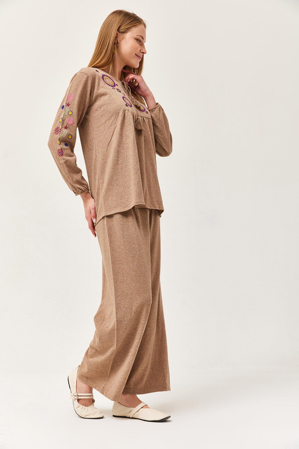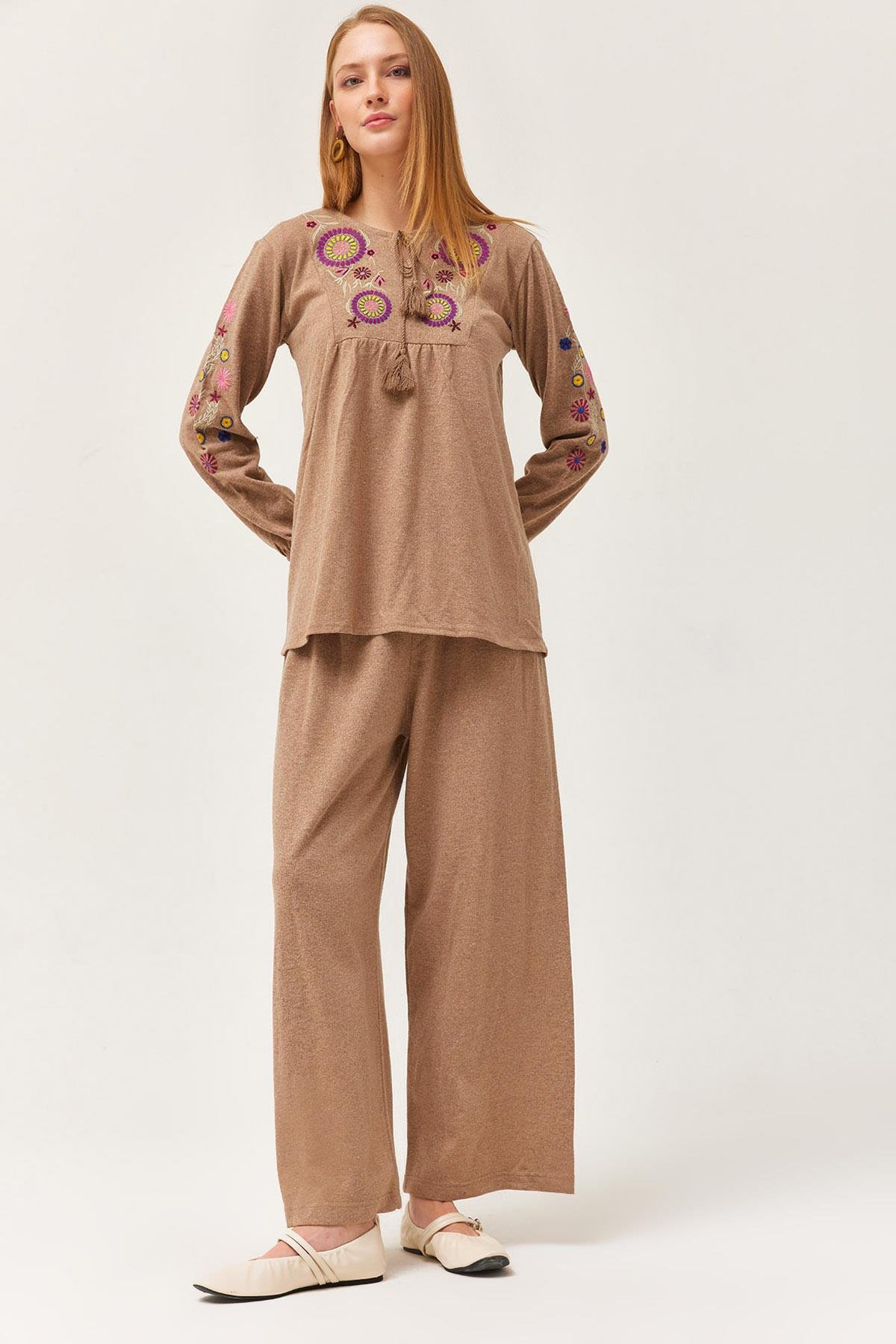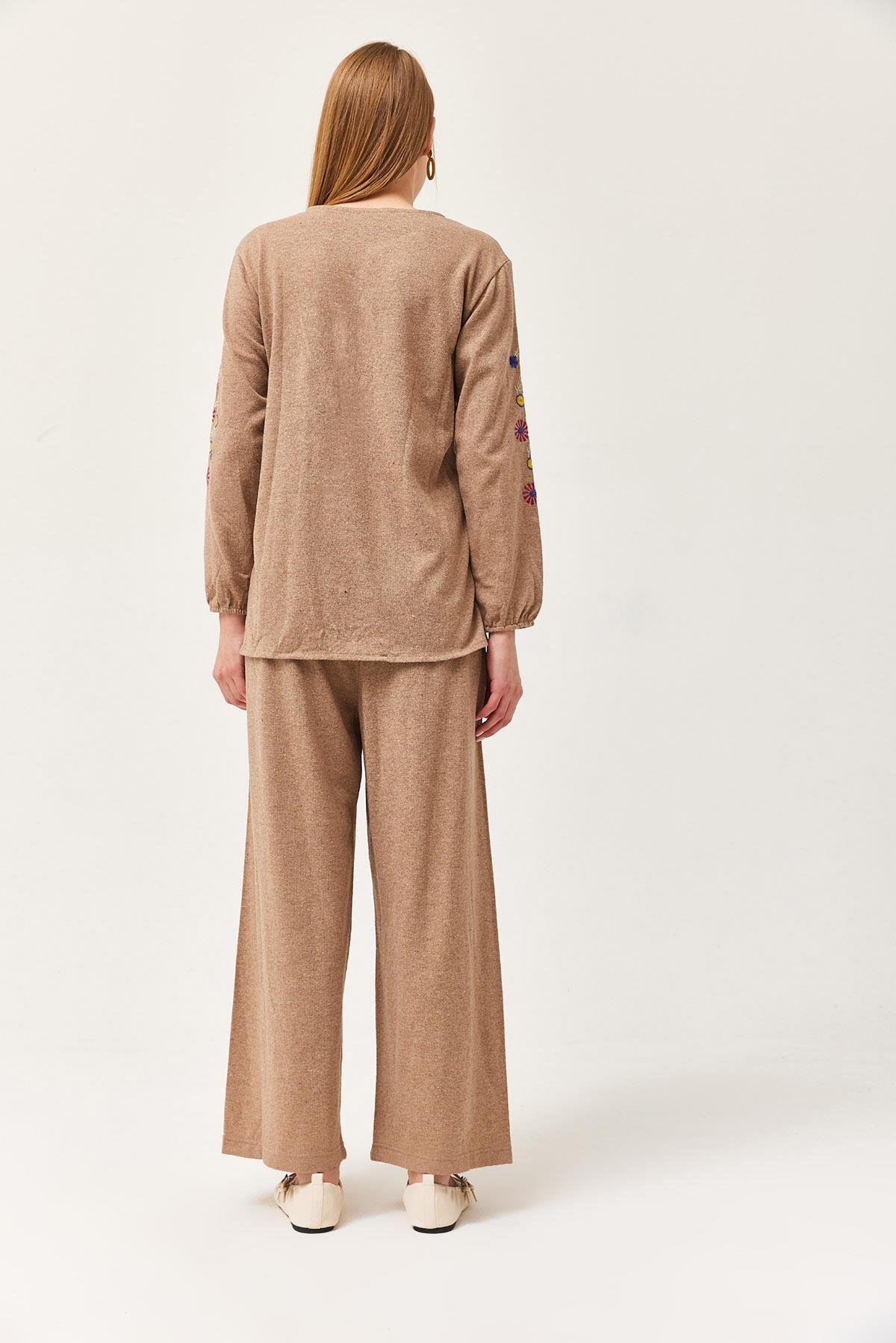 Hera Kumaş Önü ve Kolları İşlemeli İkili Takım Vizon (250398TKMXVZN)