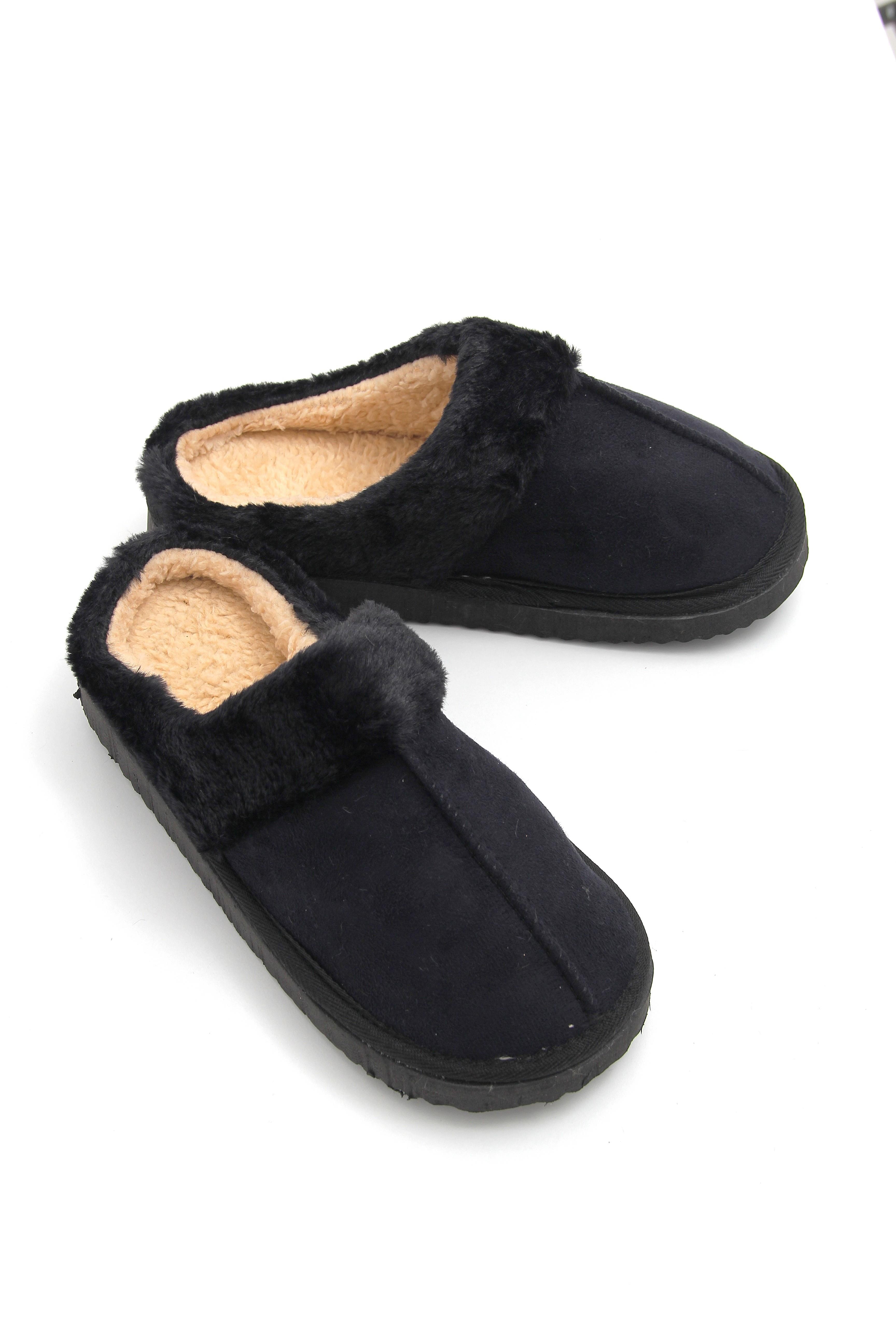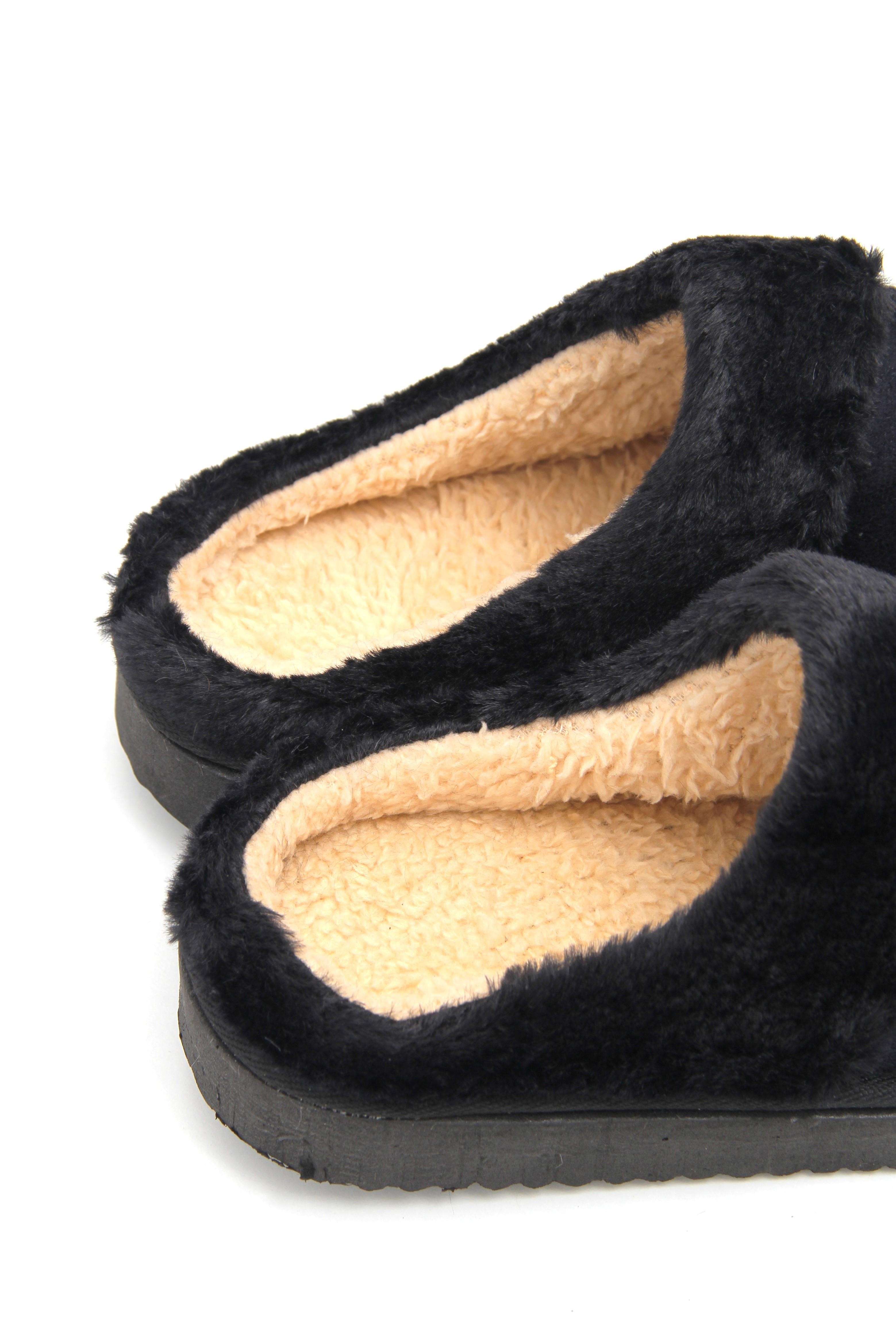 İçi Yünlü Nubuk Kadın Ev Terliği Siyah (251287TRLXSYH)