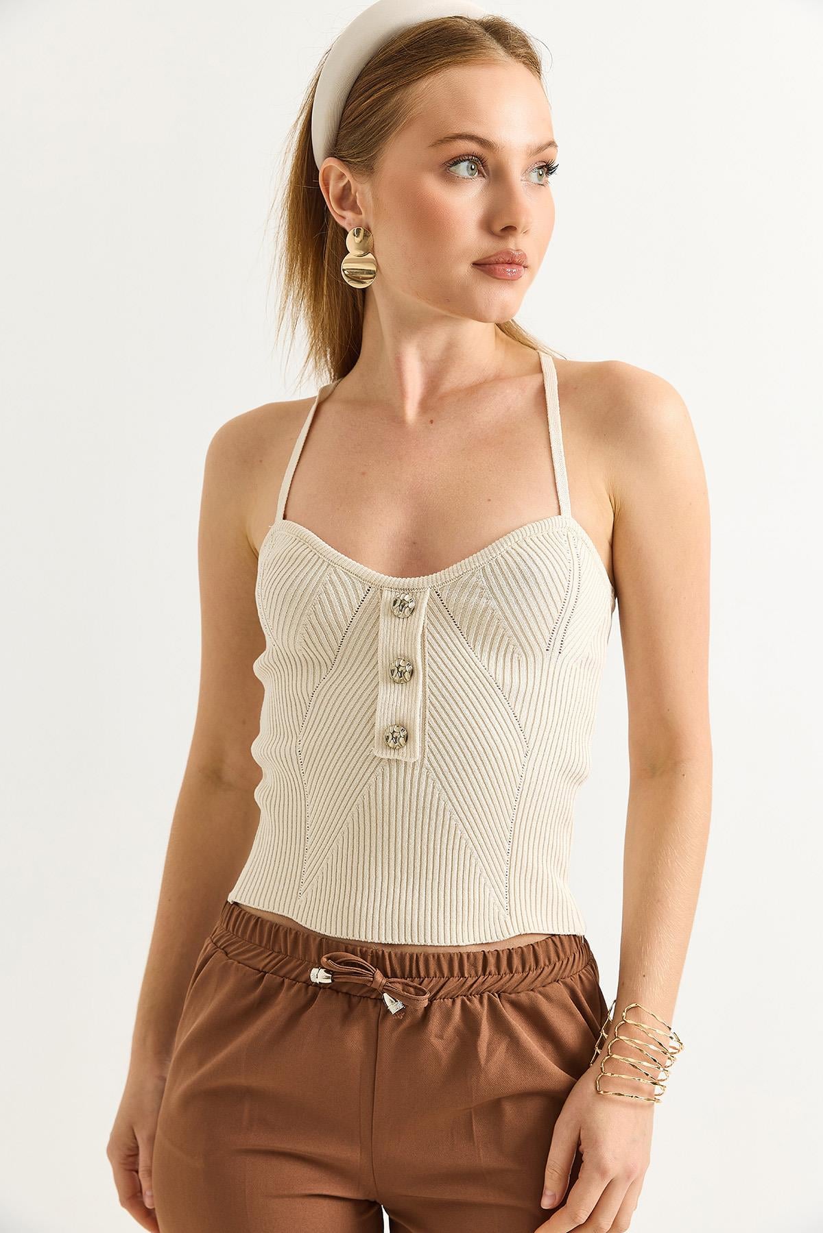 İp Askılı Ajurlu Triko Bluz Bej (251030BLZXBEJ)