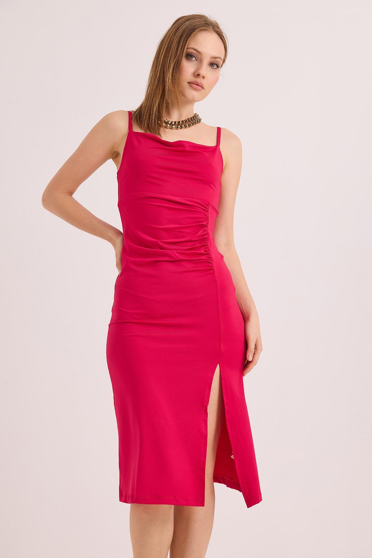 İp Askılı Büzgü Detaylı Yırtmaçlı Elbise Pembe İp Askılı Büzgü Detaylı Yırtmaçlı Elbise Haki İp Askılı Büzgü Detaylı Yırtmaçlı Elbise Kırmızı