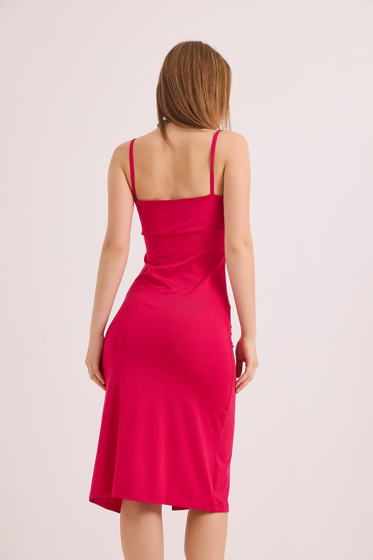 İp Askılı Büzgü Detaylı Yırtmaçlı Elbise Kırmızı (250852ELBXKRMZ)