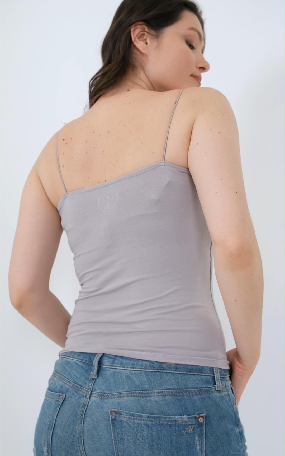 İp Askılı Uzun Crop Bluz Gri (350001BLZXGRİ)