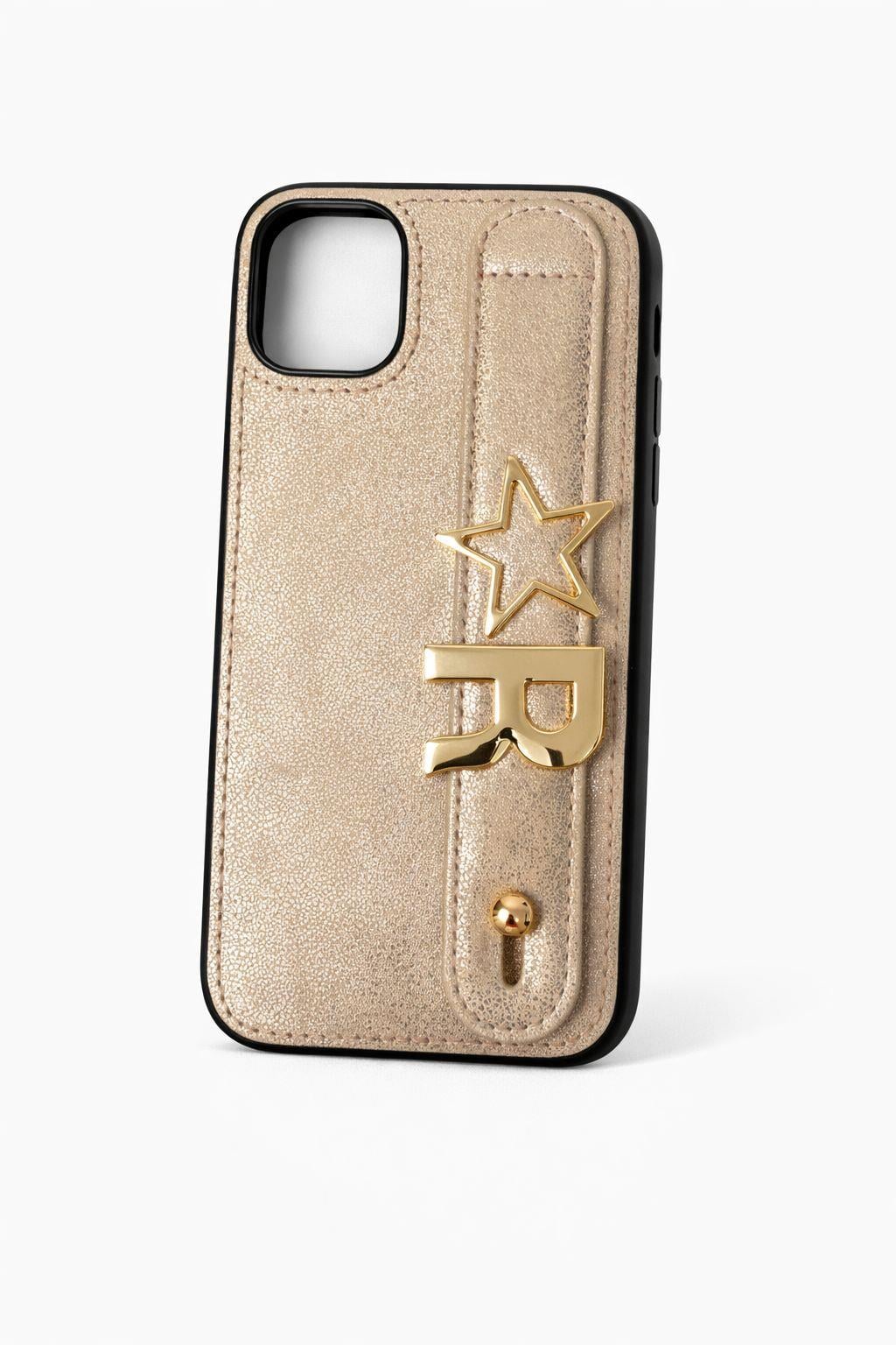 İphone 11 Uyumlu Charmlı ve Harfli Deri Kılıf Bej