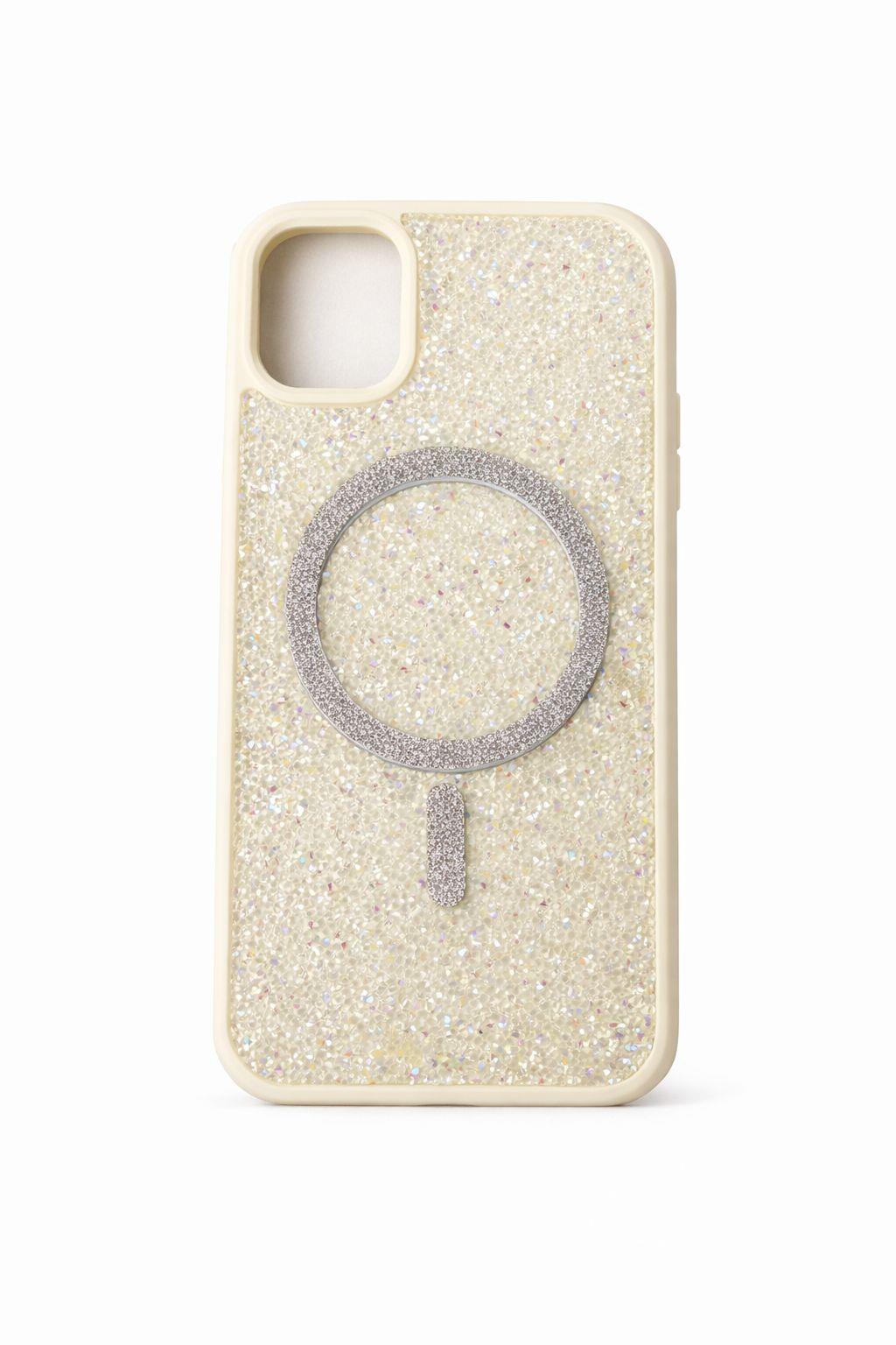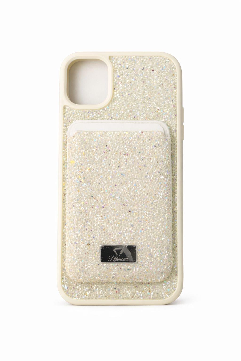 İphone 11 Uyumlu Parlak ve Taşlı Kart Bölümlü Kılıf Beyaz (300128KLFXBYZ)