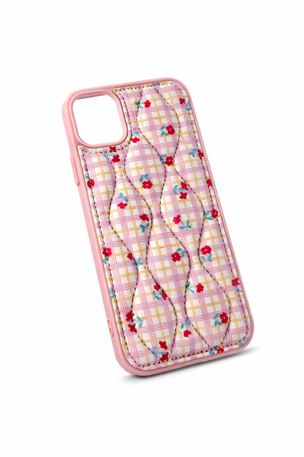 İphone 12 Pro Uyumlu Çiçek Desenli Kabartmalı Kılıf Pembe