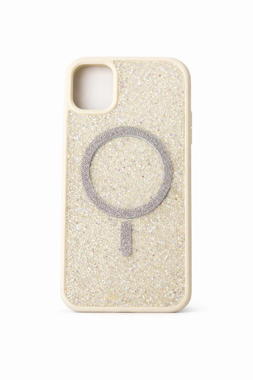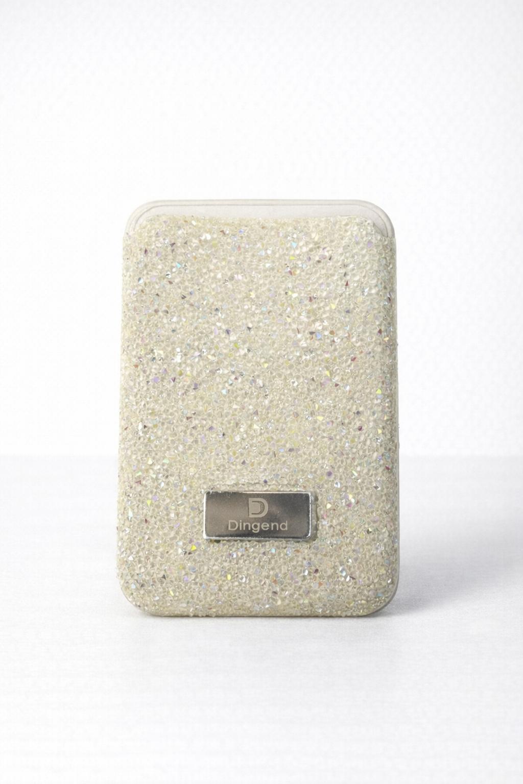 İphone 12 Uyumlu Parlak ve Taşlı Kart Bölümlü Kılıf Beyaz