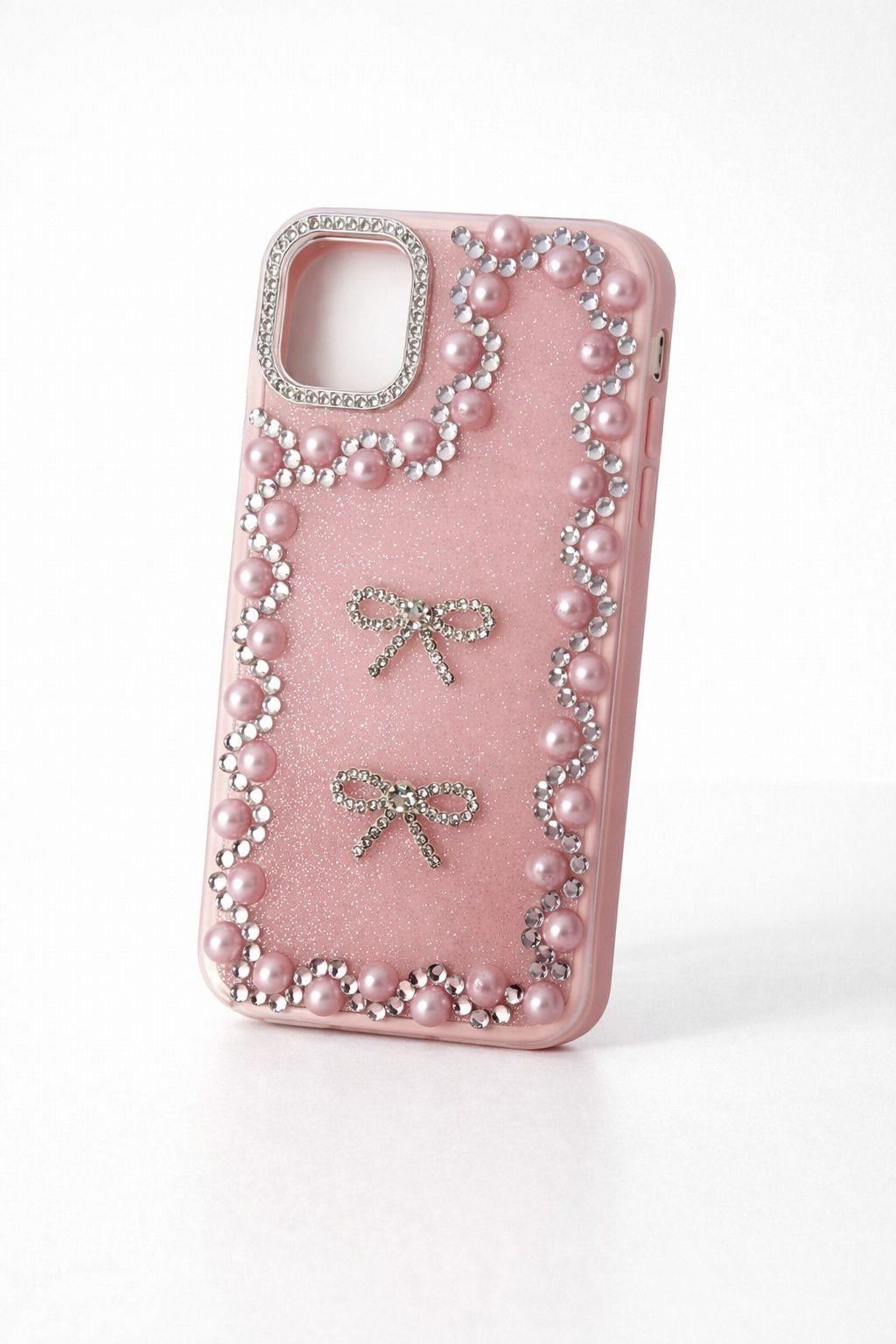 İphone 13 Pro Max Uyumlu Taş Detaylı Telefon Kılıfı Pembe