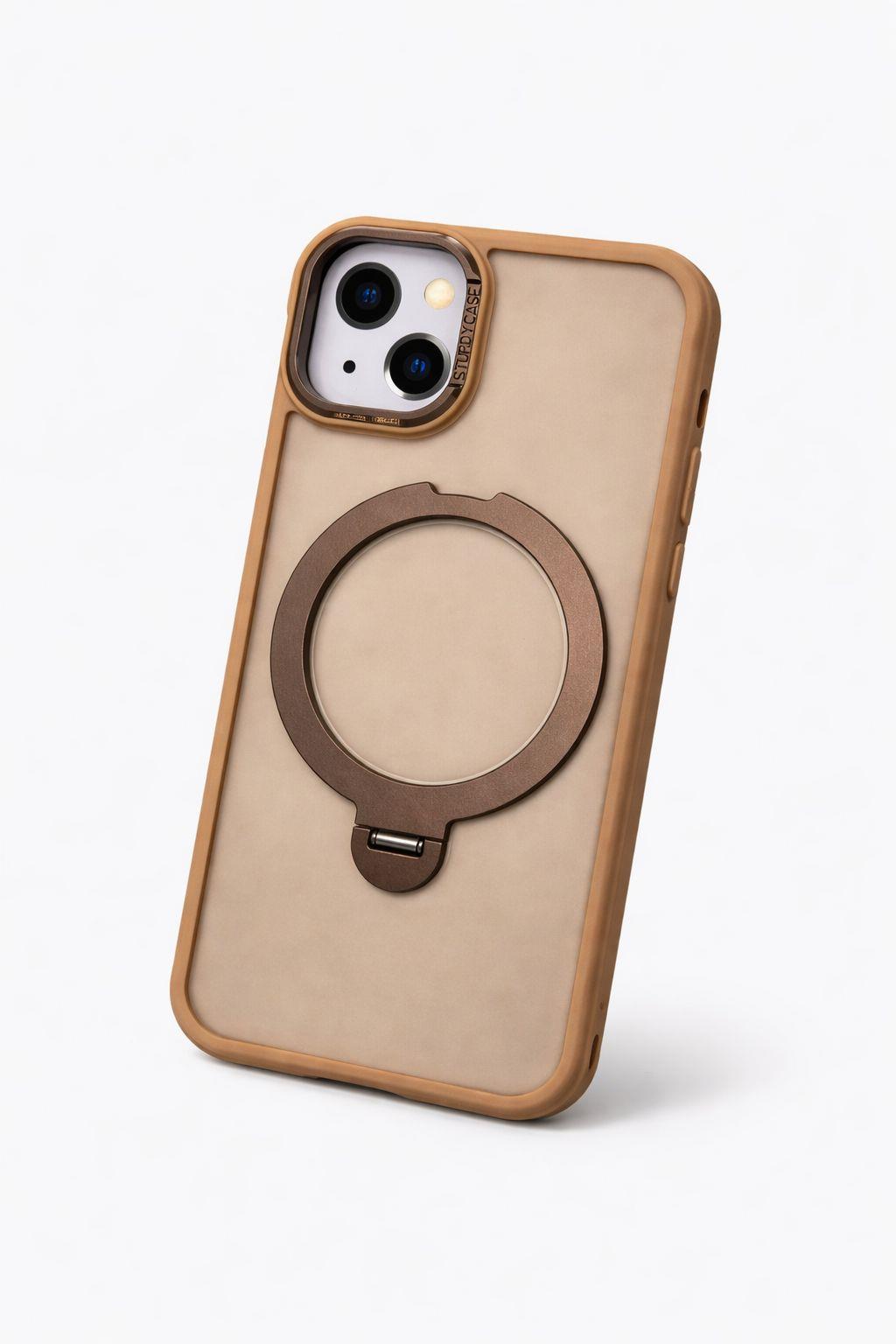 İphone 13 Uyumlu MagSafe Dönebilen Mat Yüzeye Sahip Kılıf Kahverengi
