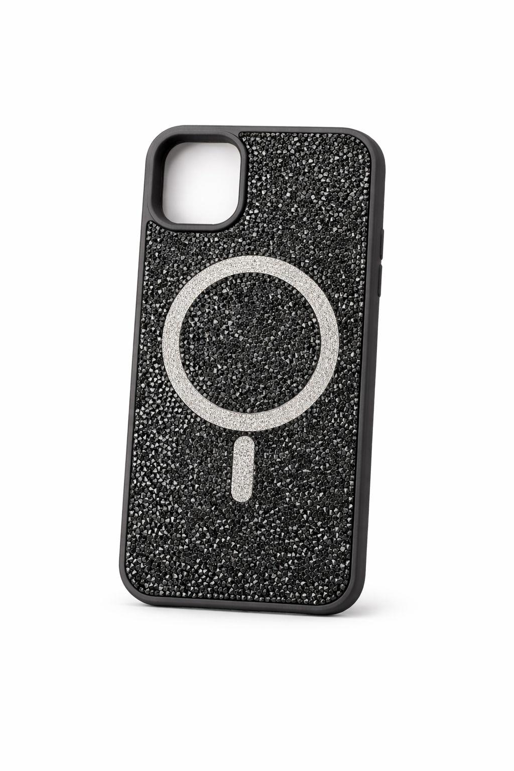 İphone 13 Uyumlu Parlak ve Taşlı Kart Bölümlü Kılıf Siyah