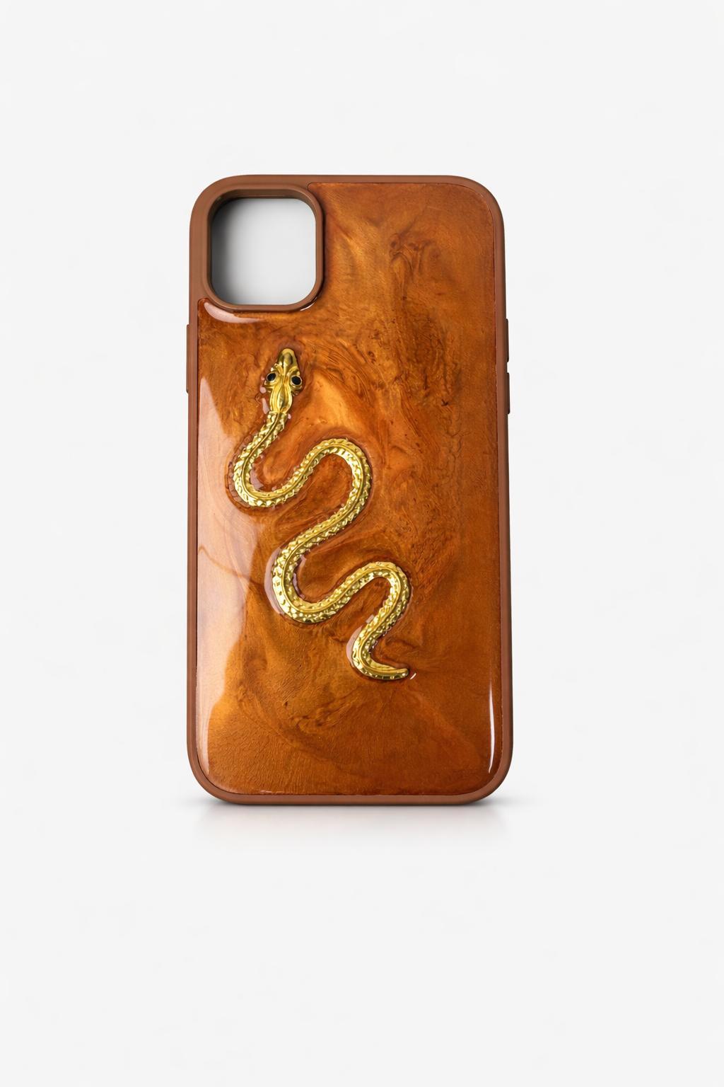 İphone 14 Pro Yılan 3D Figür Kabartmalı Kılıf Taba