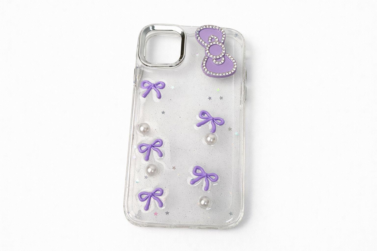 İphone 14 Uyumlu Kurdeleli ve İnci Taşlı Kılıf Mor (300222KLFXMOR)