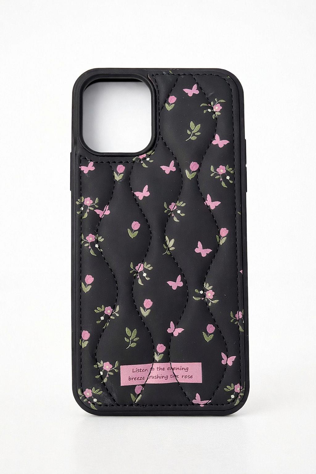 İphone 15 Pro Max Uyumlu Çiçek Desenli Kabartmalı Kılıf Siyah
