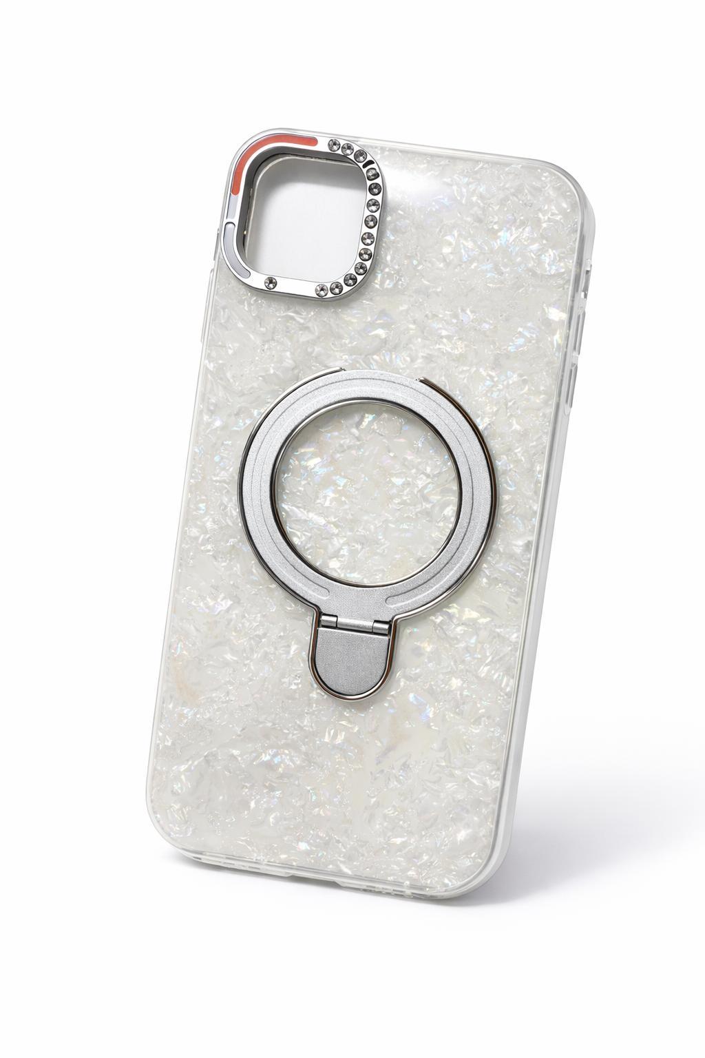 İphone 15 Pro Max Uyumlu Magsafe Dönebilen Halkalı Kılıf Beyaz