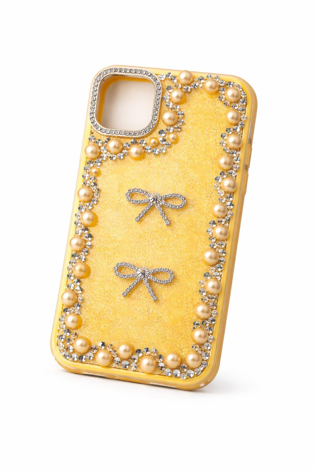 İphone 15 Pro Max Uyumlu Taş Detaylı Telefon Kılıfı Sarı