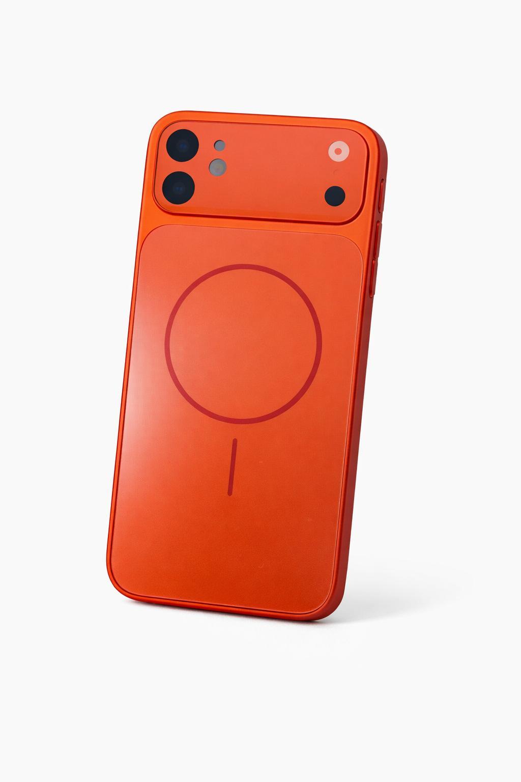İphone 15 Pro Uyumlu 17 Pro Max Görünümlü Çevirici Kameralı Kılıf Turuncu