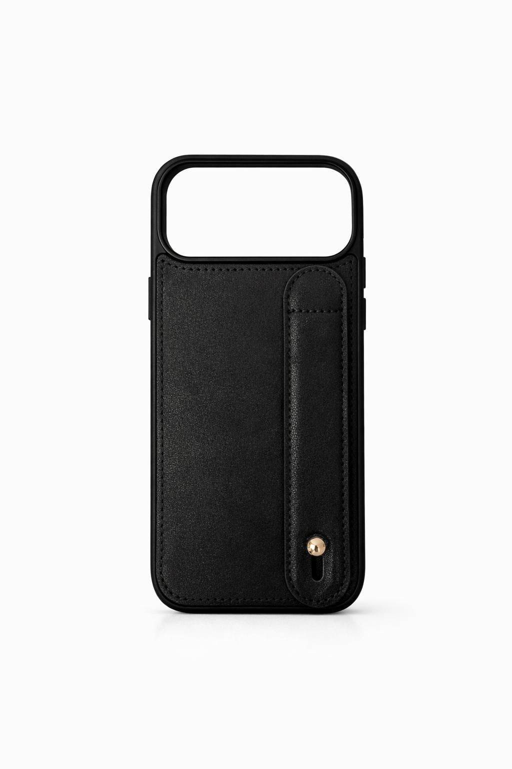İphone 15 Pro Uyumlu Charmlı ve Harfli Deri Kılıf Siyah