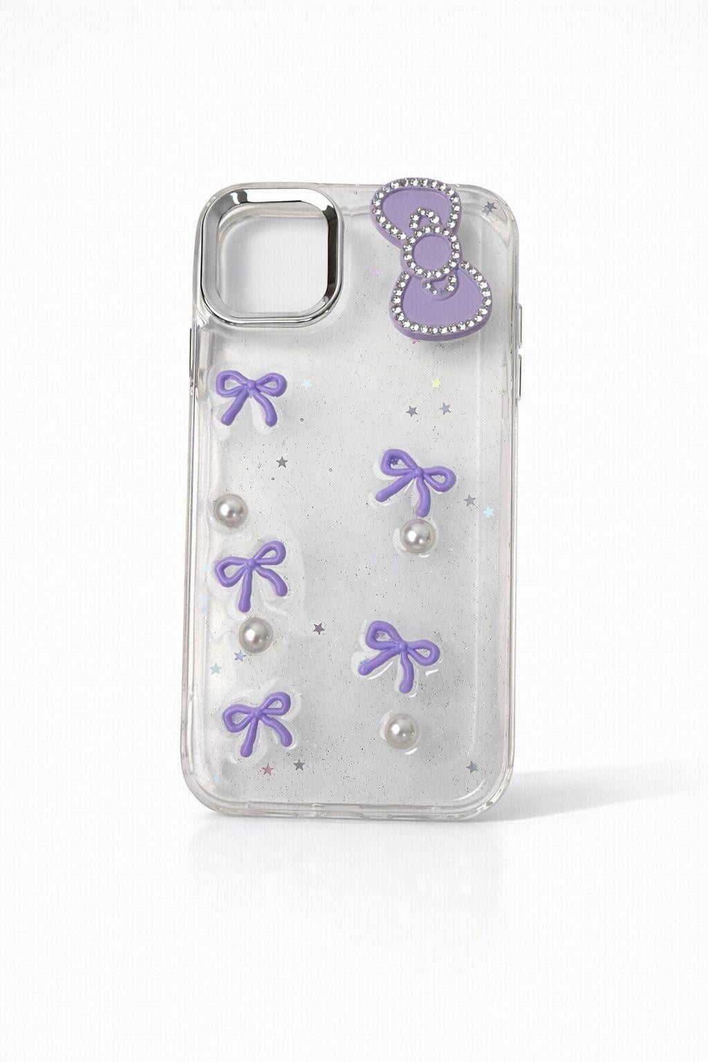 İphone 15 Uyumlu Kurdeleli ve İnci Taşlı Kılıf Mor