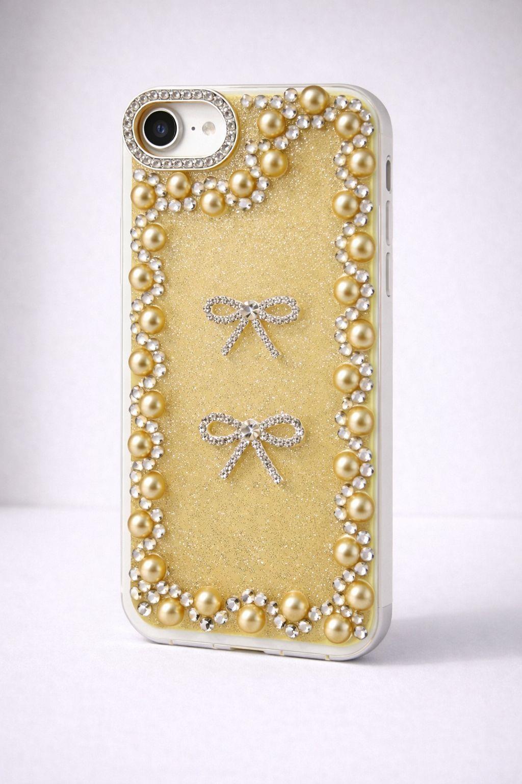 İphone 16 E Uyumlu Taş Detaylı Telefon Kılıf Sarı