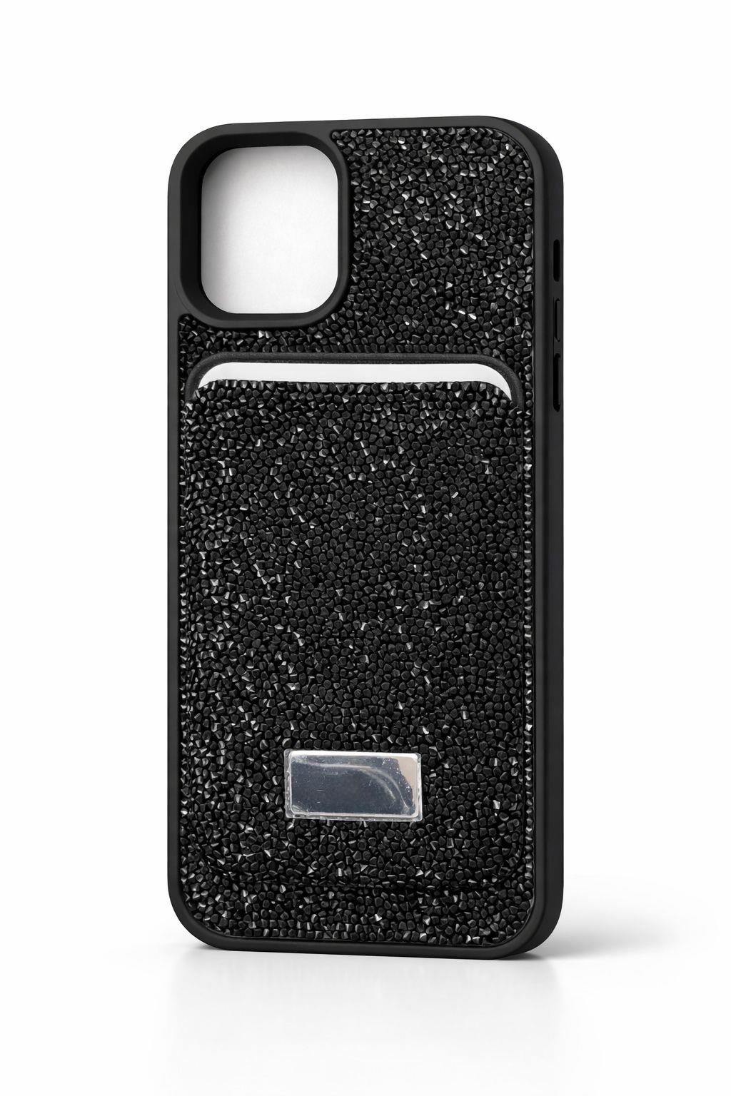İphone 16 Pro Max Uyumlu Parlak ve Taşlı Kart Bölümlü Kılıf Siyah (300327KLFXSYH)
