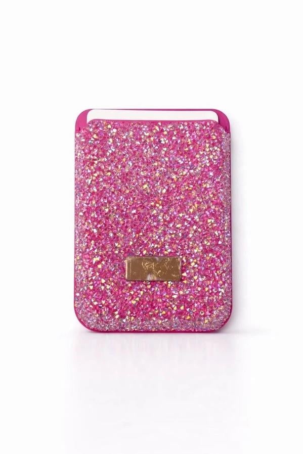 İphone 16 Pro Uyumlu Parlak ve Taşlı Kart Bölümlü Kılıf Pembe (300368XKLFXPMB)